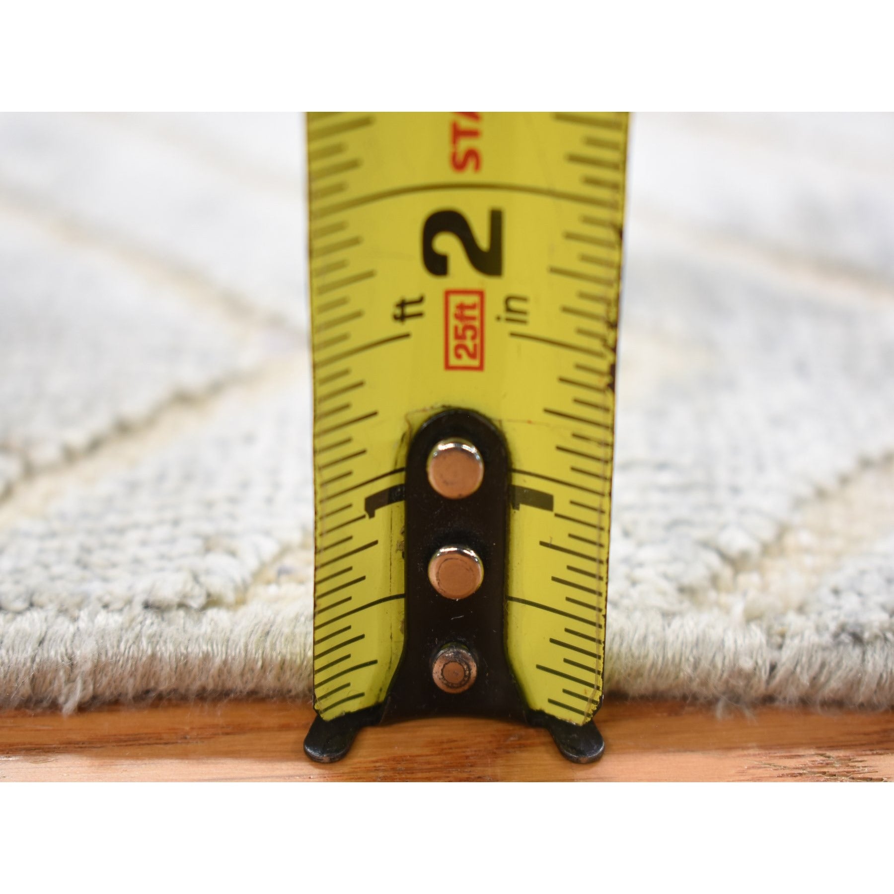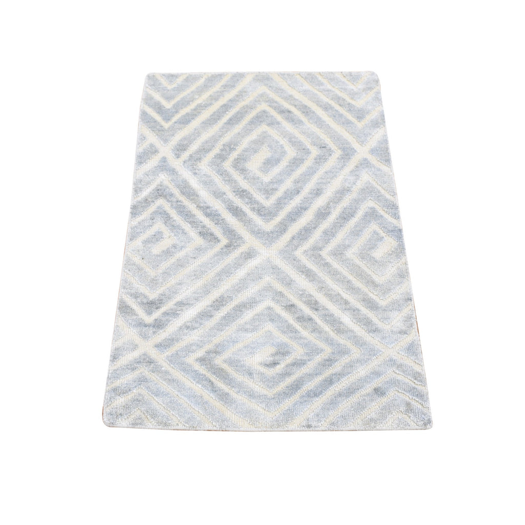 2'x3' Light Gray, Modern Design Silk With Textured Wool, High And Low Hand Knotted, Mat Oriental Rug FWR482118