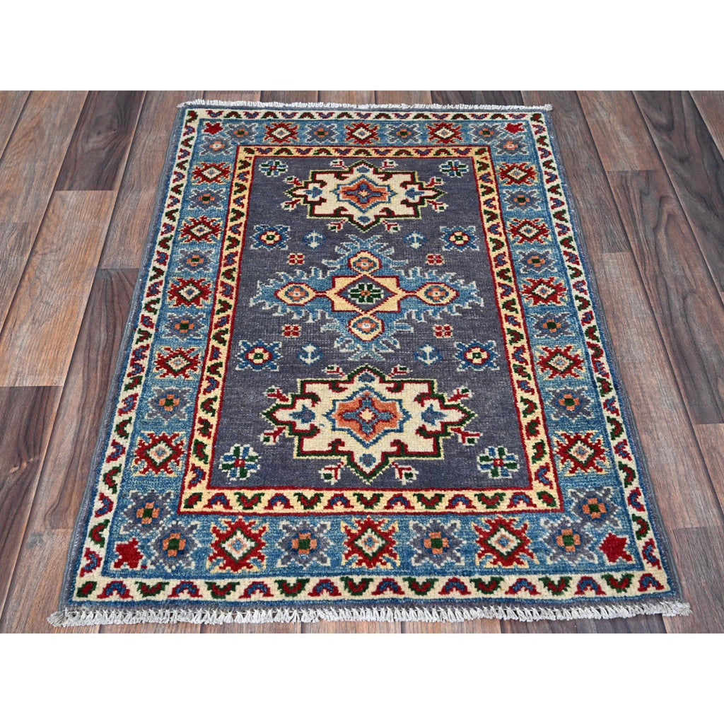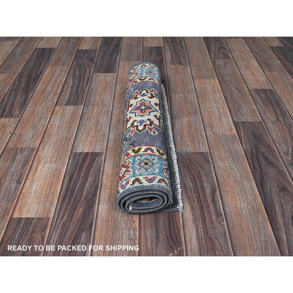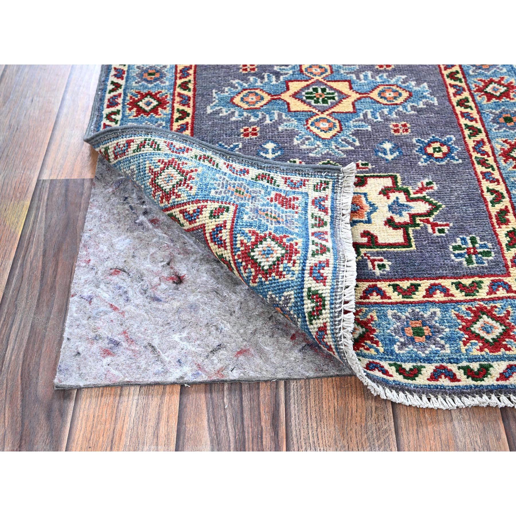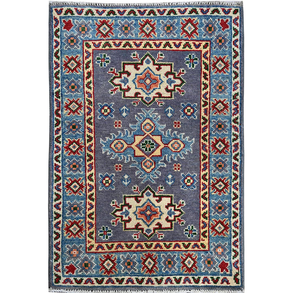2'x3' Lilac Gray, Kazak With Geometric Medallions Design, Vegetable Dyes, Hand Knotted, Soft Wool, Denser Weave, Sample, Mat, Oriental Rug FWR2214