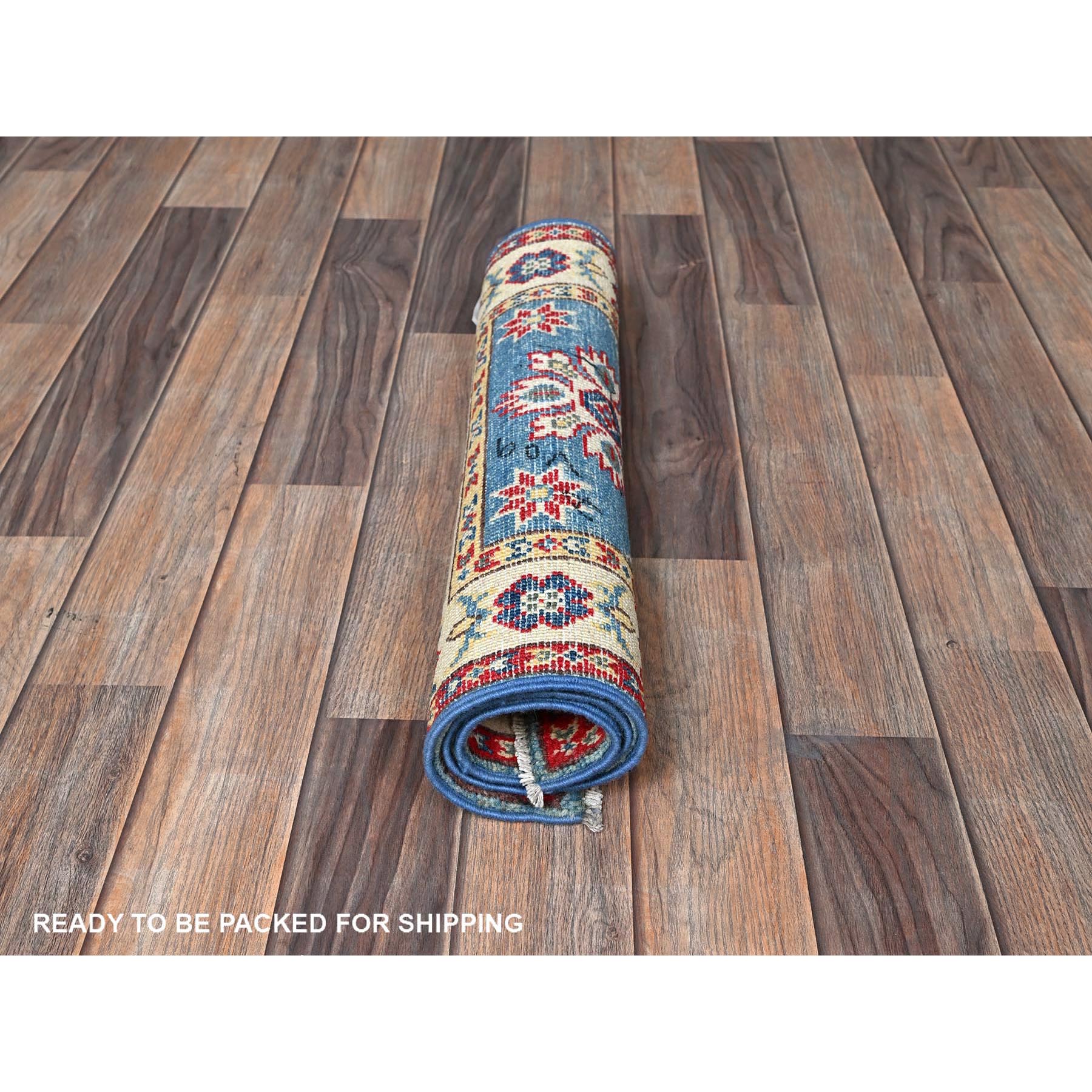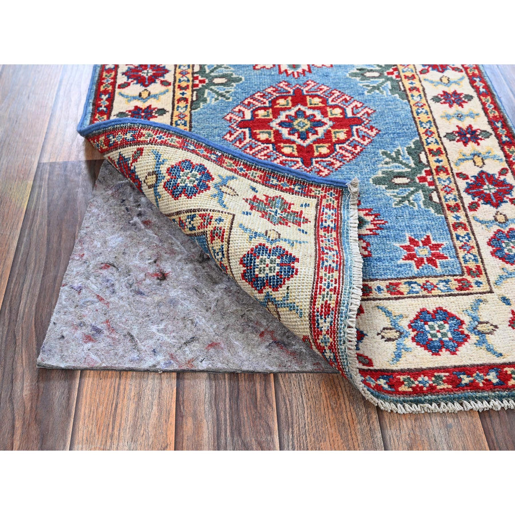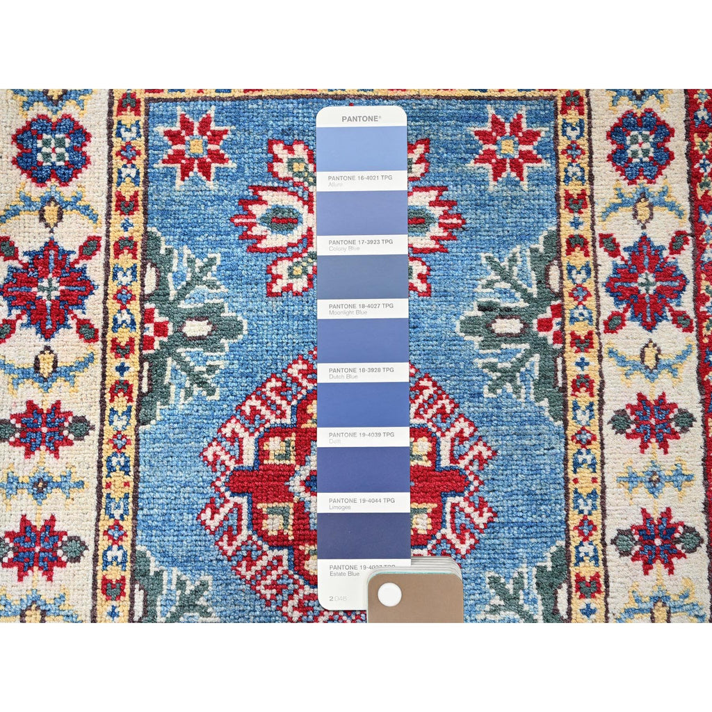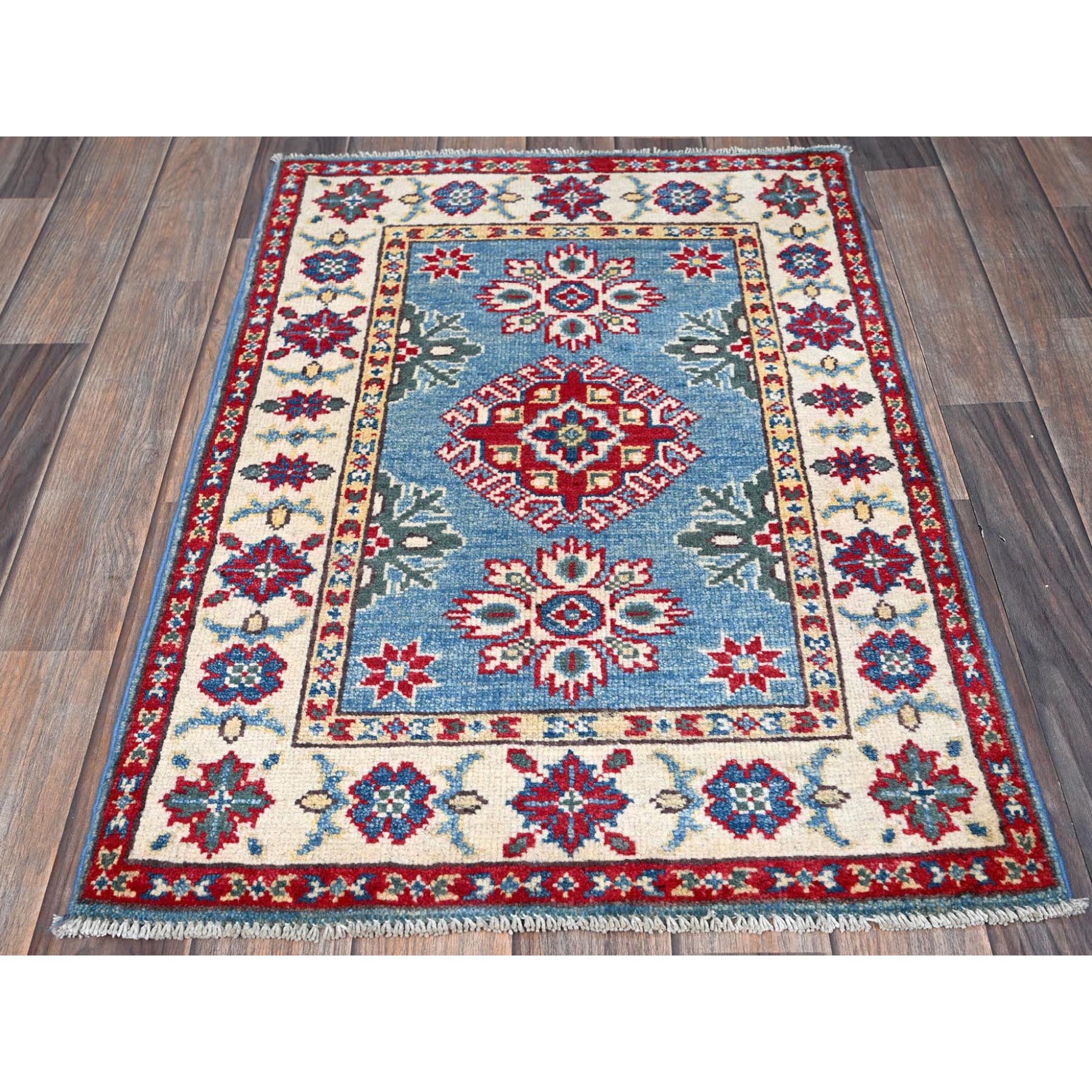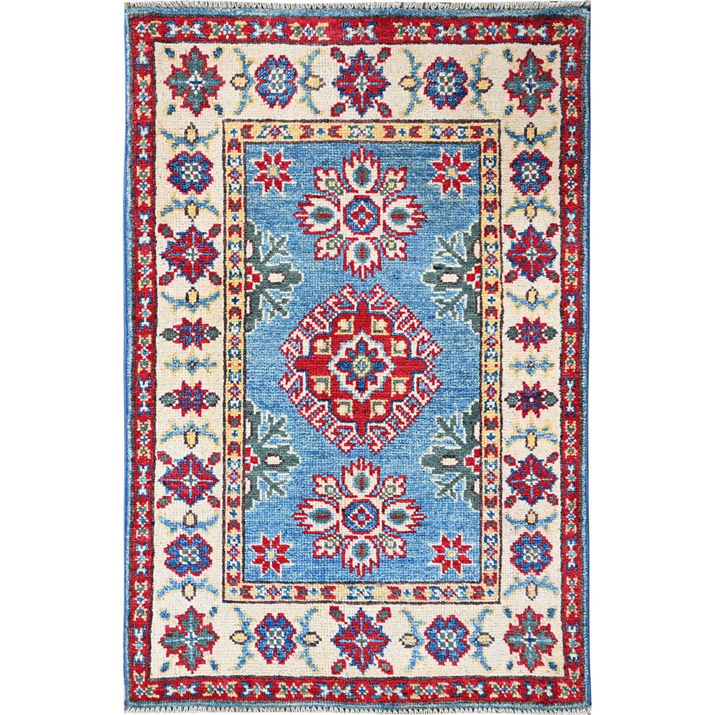 2'x3' Maya Blue, Kazak With Tribal Medallions Design, Hand Knotted, Vegetable Dyes, Soft Wool, Denser Weave, Sample, Mat, Oriental Rug FWR2250