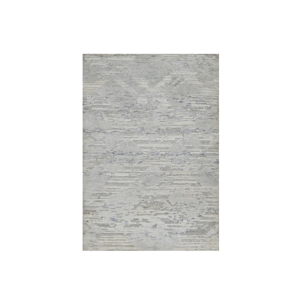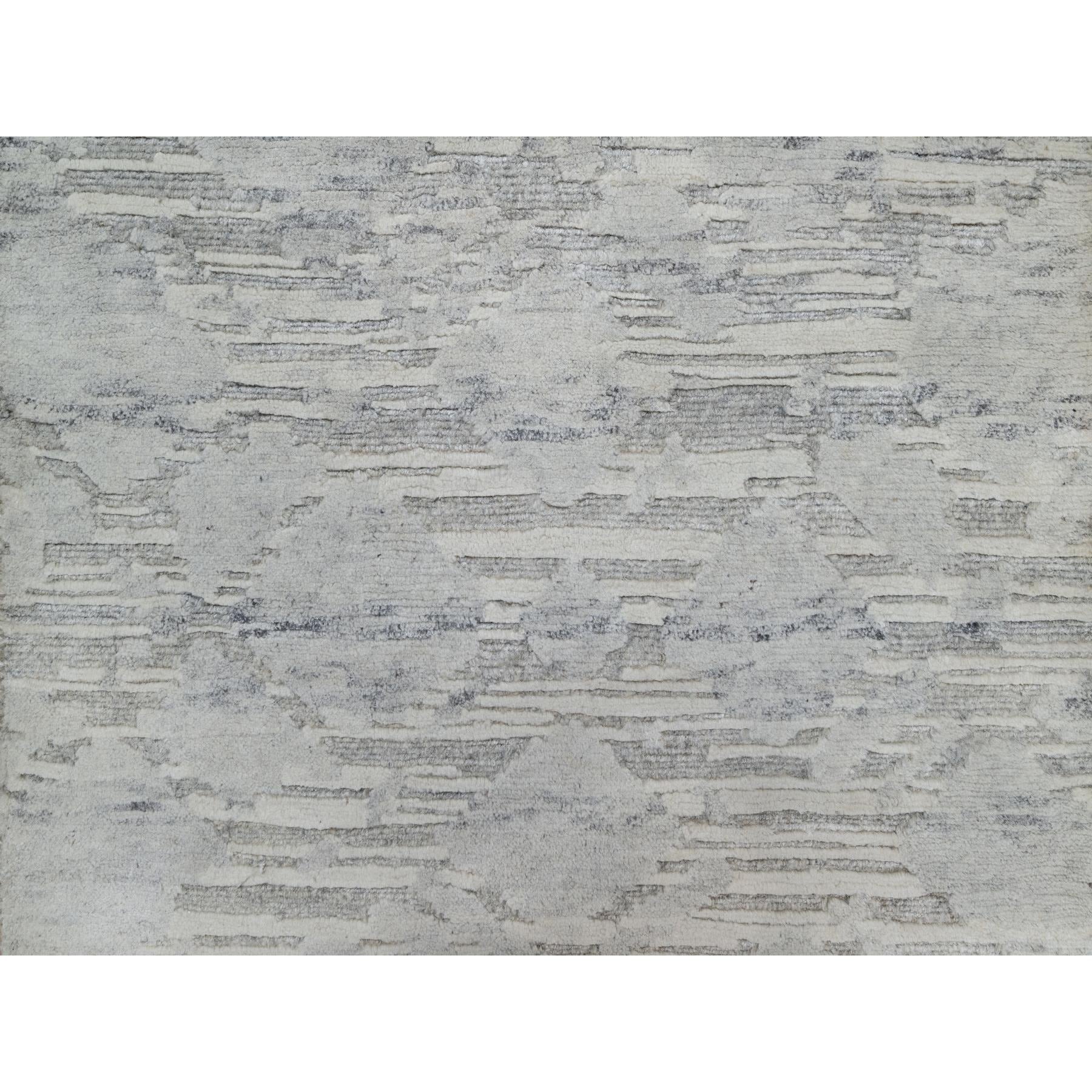 2'x3' Medium Gray, Hand Spun Undyed Natural Wool, Modern Design, Cut And Loop Pile, Hand Knotted, Mat, Oriental Rug FWR547644
