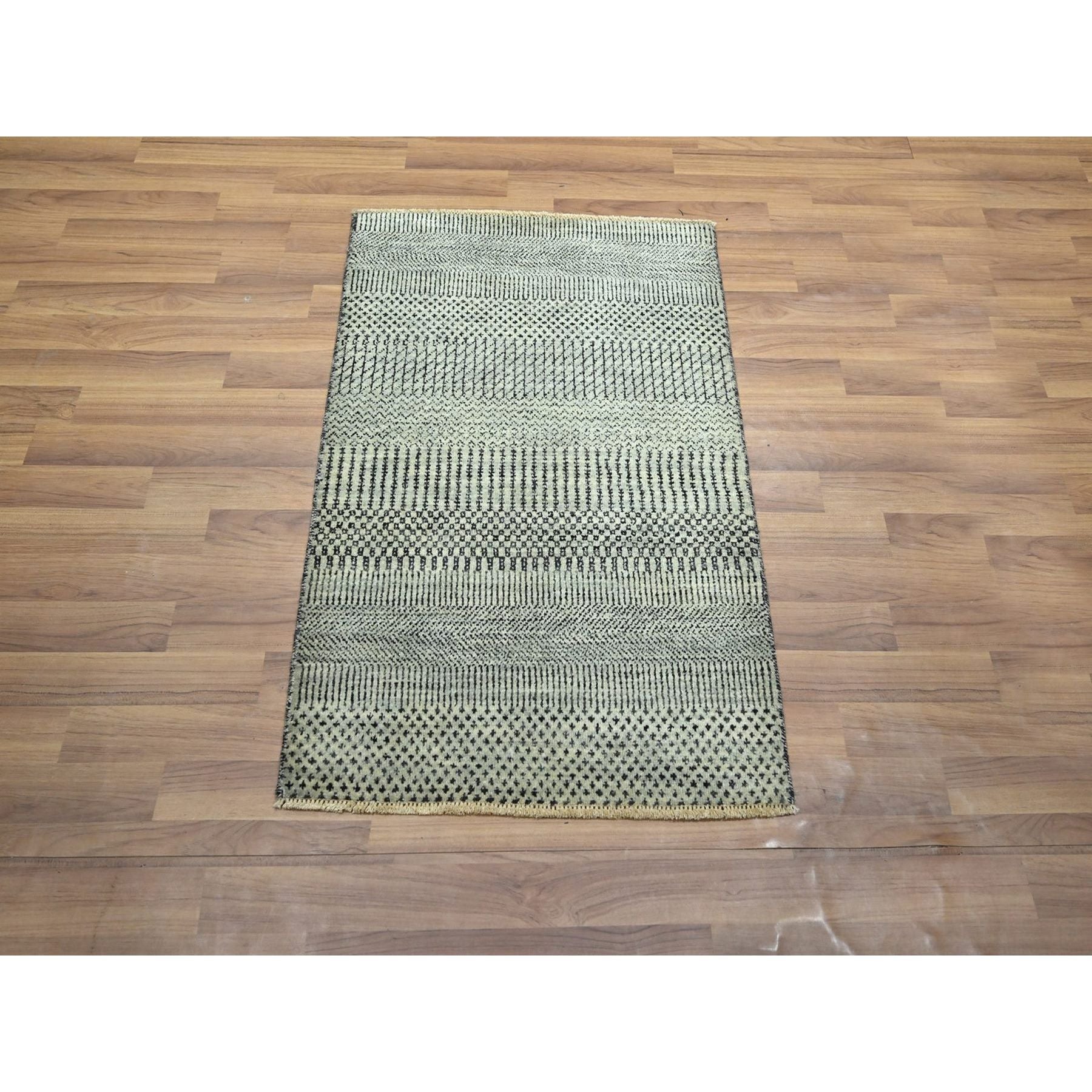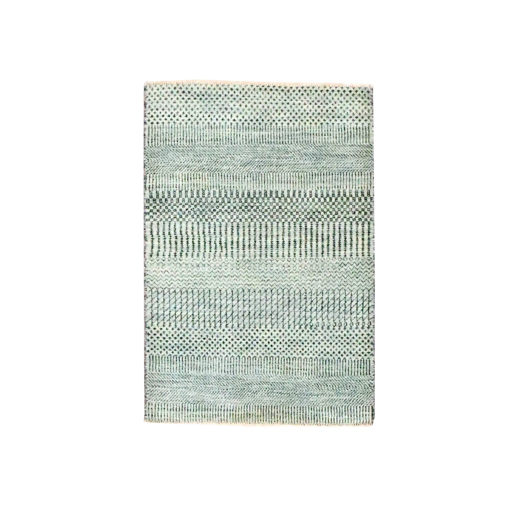 2'x3' Medium Gray, Wool With Touch Of Silk, Modern Grass Design, Hand Knotted, Tone On Tone, Lush And Plush, Sample, Mat, Oriental Rug FWR459672