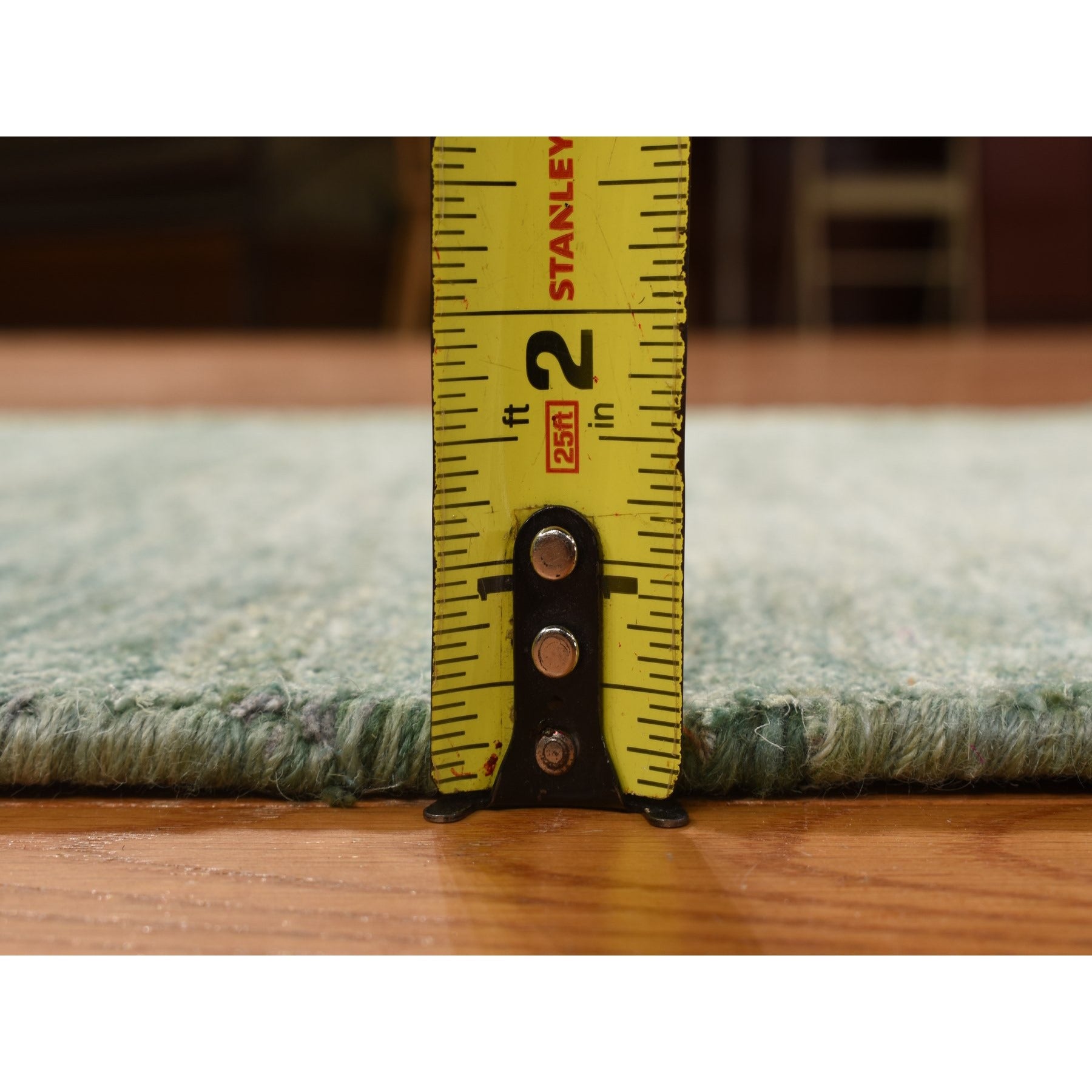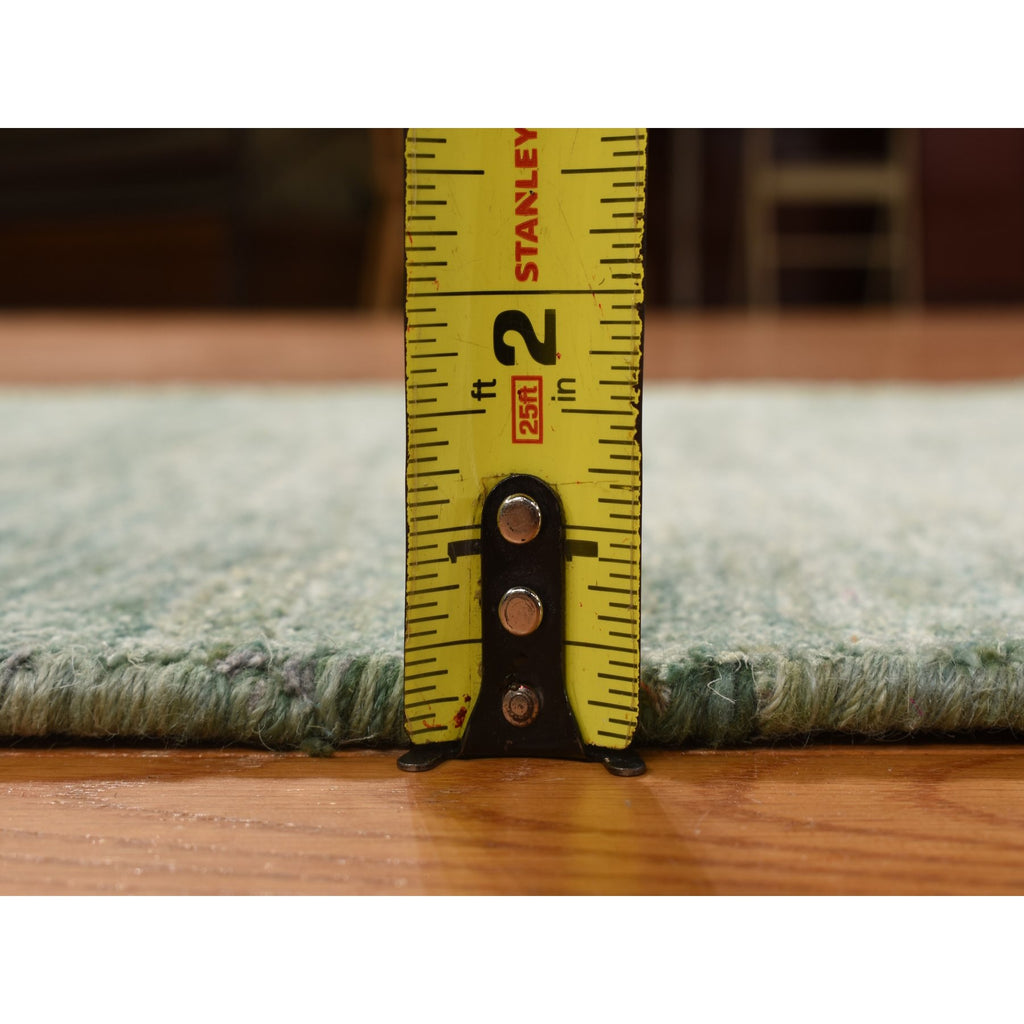 2'x3' Mist Green, Sample, Strike Off, Pure Sari Silk, Hand Knotted, Plain Solid Design, Mat, Oriental Rug FWR469752