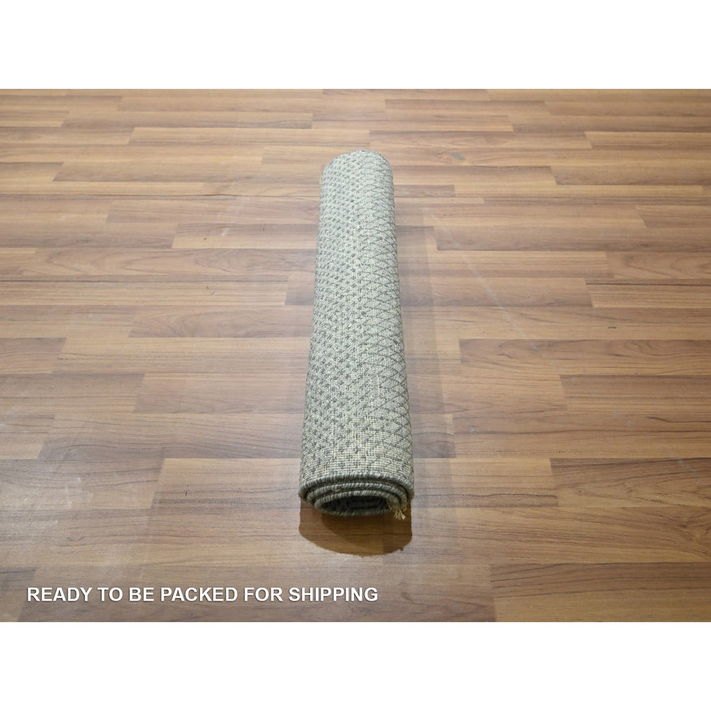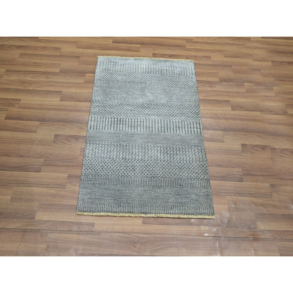 2'x3' Misty Gray, Modern Grass Design, Hand Knotted, Wool With Touch Of Silk, Tone On Tone, Lush And Plush, Mat, Sample, Oriental Rug FWR459900