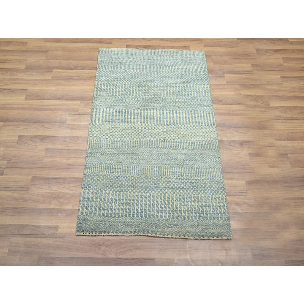 2'x3' Misty Gray, Modern Grass Design, Tone On Tone, Lush And Plush, Hand Knotted, Wool With Touch Of Silk, Sample, Mat, Oriental Rug FWR458958
