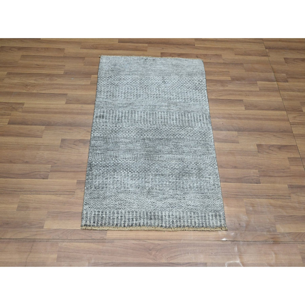 2'x3' Misty Gray, Tone On Tone, Modern Grass Design, Hand Knotted, Wool With Touch Of Silk, Lush And Plush, Sample, Mat, Oriental Rug FWR459936