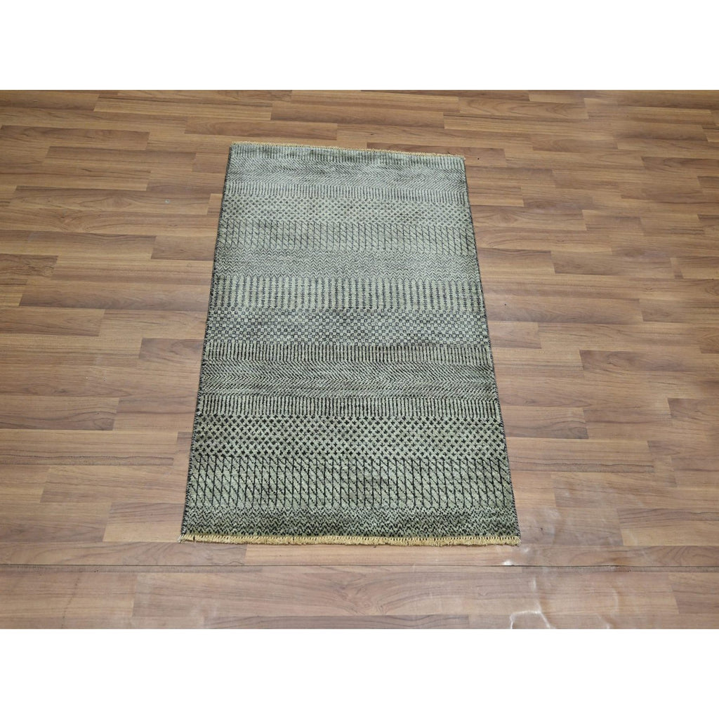 2'x3' Nevada Gray, Modern Grass Design, Hand Knotted, Wool With Touch Of Silk, Tone On Tone, Lush And Plush, Sample, Mat, Oriental Rug FWR459882