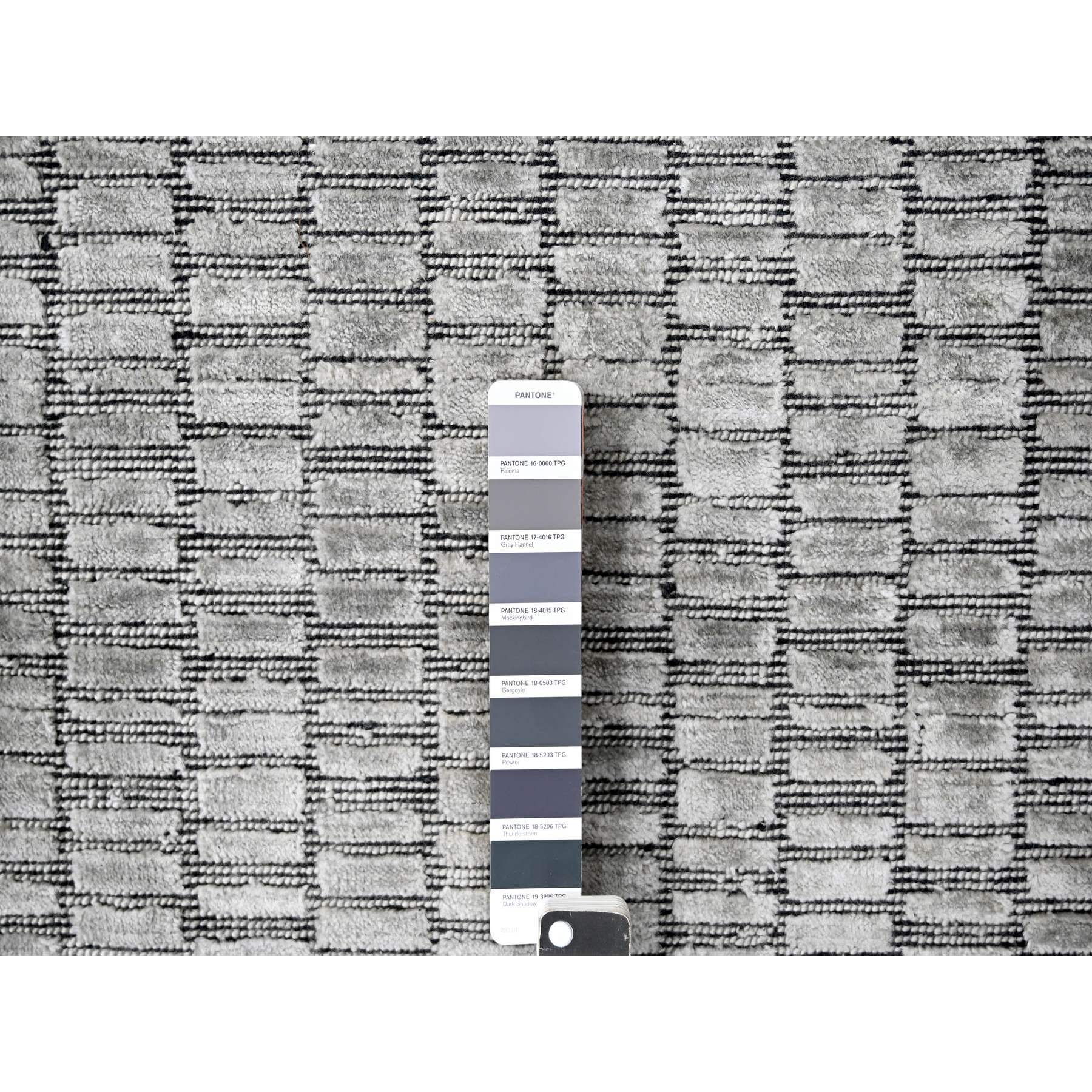 2'x3' Oxford Gray With Raisin Black, Modern Textured And Variegated Line Design, 100% Wool, Hand Loomed, Mat Oriental Rug FWR507936