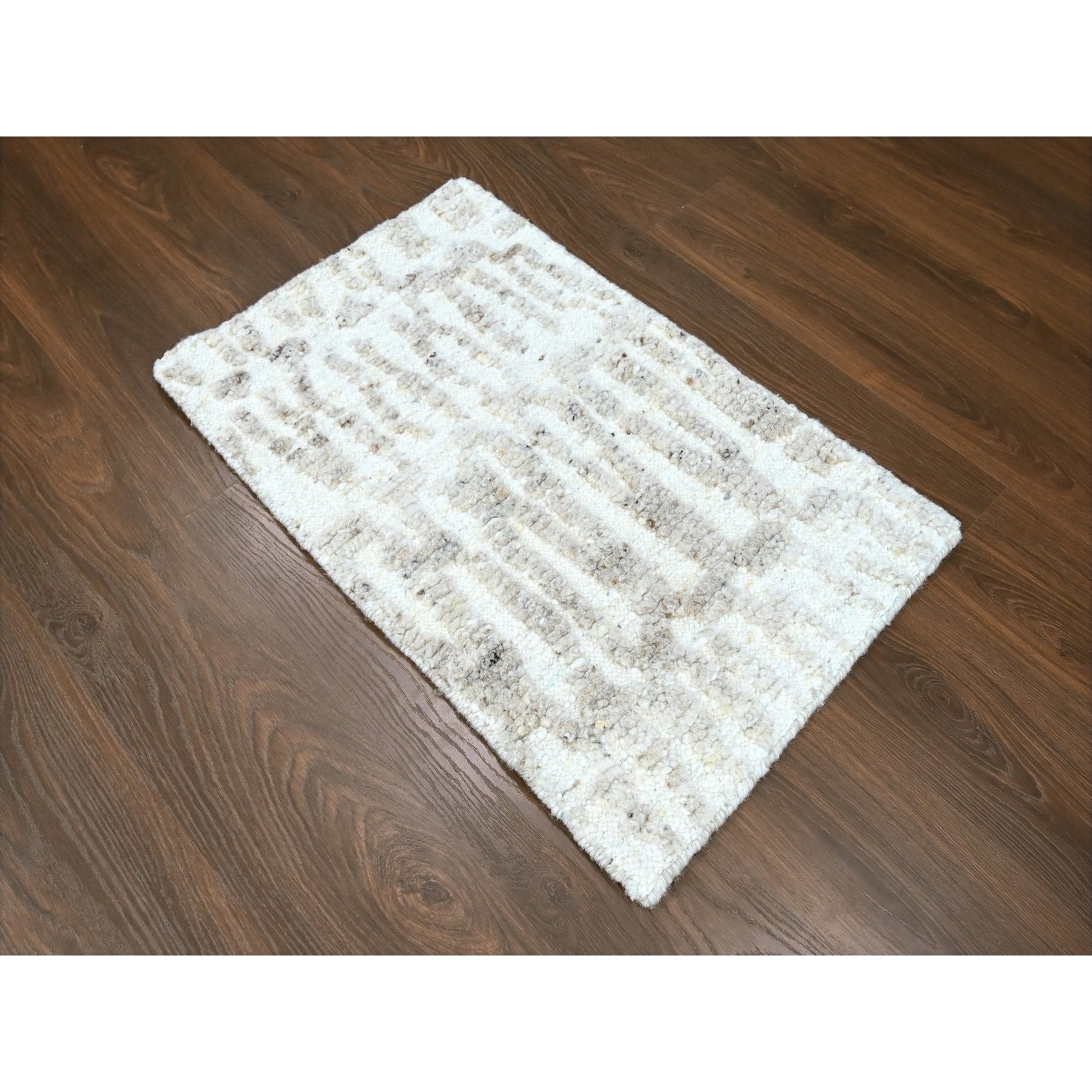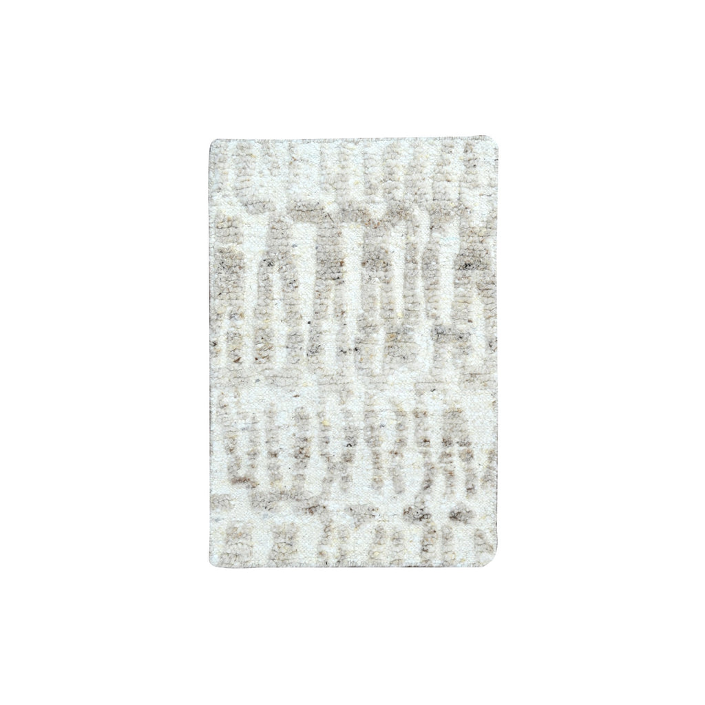 2'x3' Oyster White, Minimalist Swedish Design, Hand Knotted, Pure Wool, Sample, Mat, Oriental Rug FWR62088