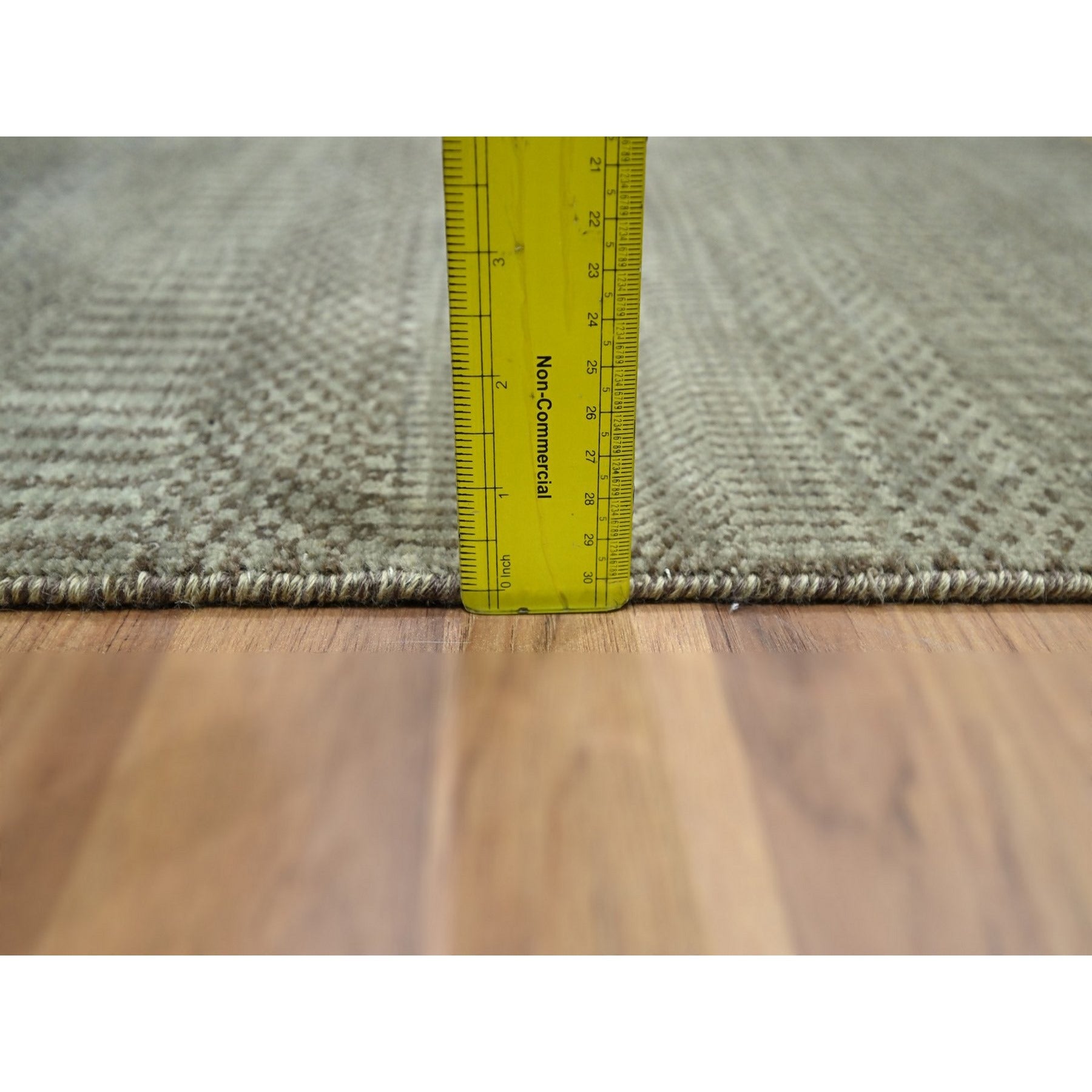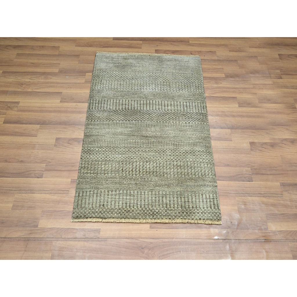 2'x3' Pastel Gray, Modern Grass Design, Hand Knotted, Wool With Touch Of Silk, Tone On Tone, Lush And Plush, Mat, Sample, Oriental Rug FWR459846