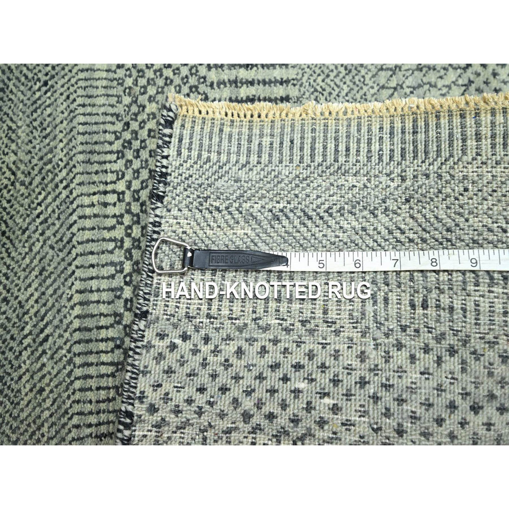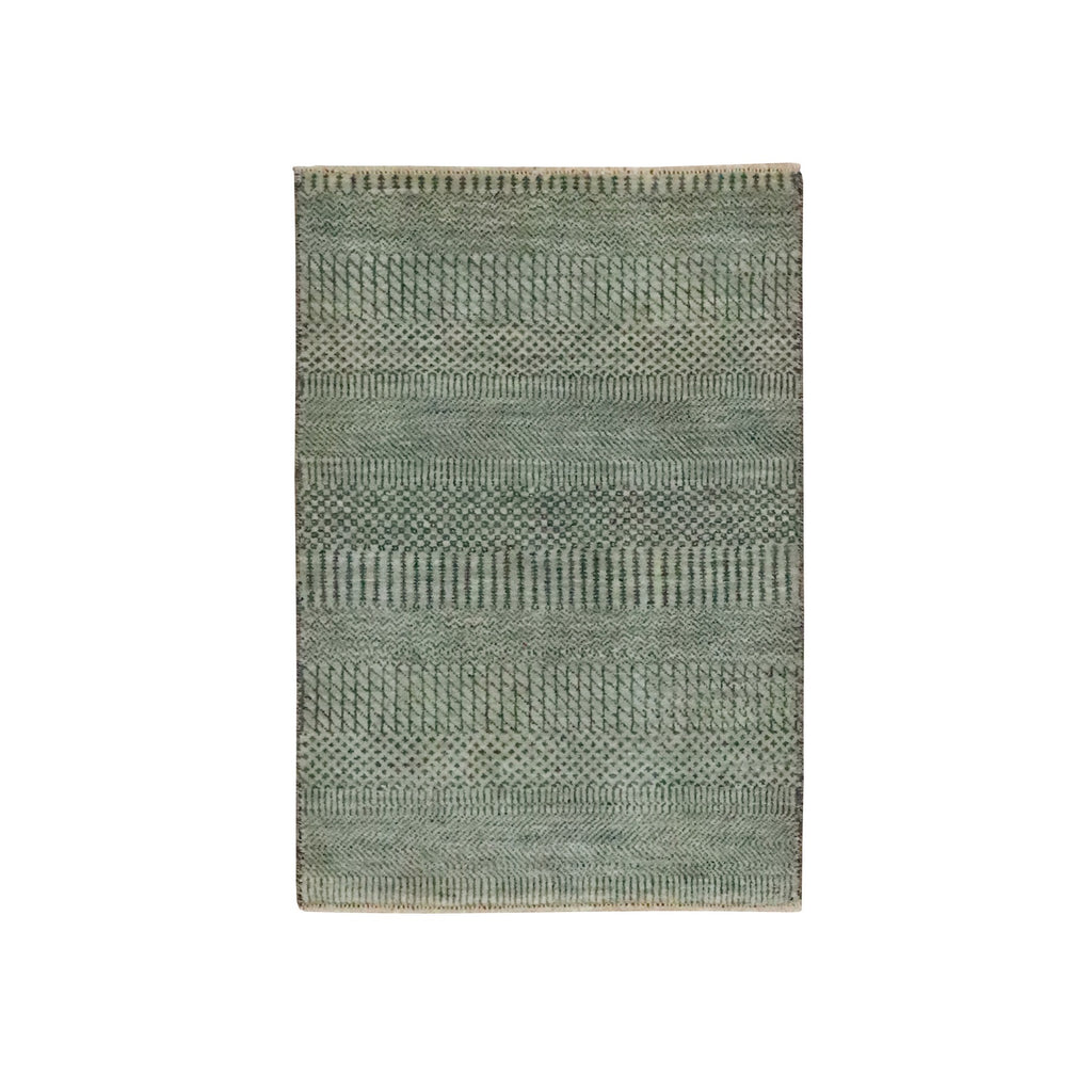 2'x3' Pastel Gray, Tone On Tone, Modern Grass Design, Hand Knotted, Wool With Touch Of Silk, Lush And Plush, Mat, Sample, Oriental Rug FWR460008