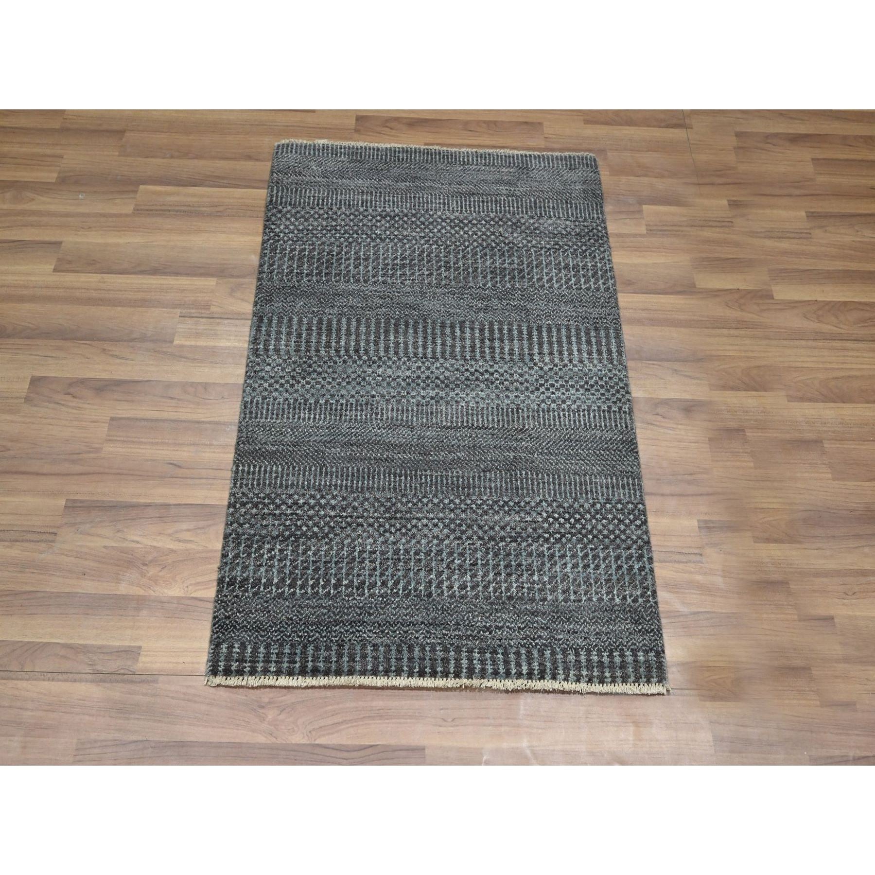 2'x3' Pewter Gray, Lush And Plush, Sample, Modern Grass Design, Tone On Tone, Hand Knotted, Wool With Touch Of Silk, Mat, Oriental Rug FWR459012