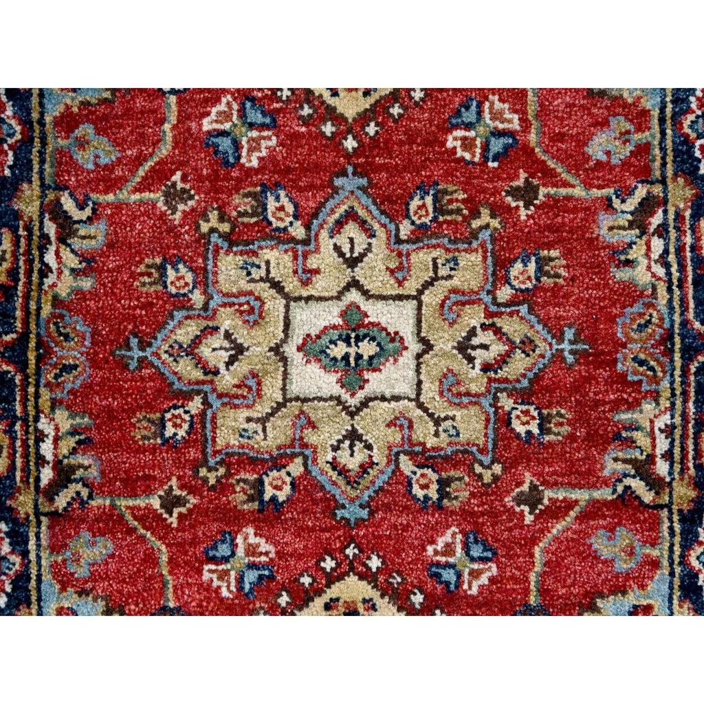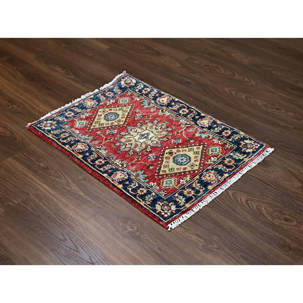 2'x3' Picante Red And Pitch Black, Karajeh Design With Geometric Medallions, Organic Wool Hand Knotted, Natural Dyes, Mat Oriental Rug FWR509880