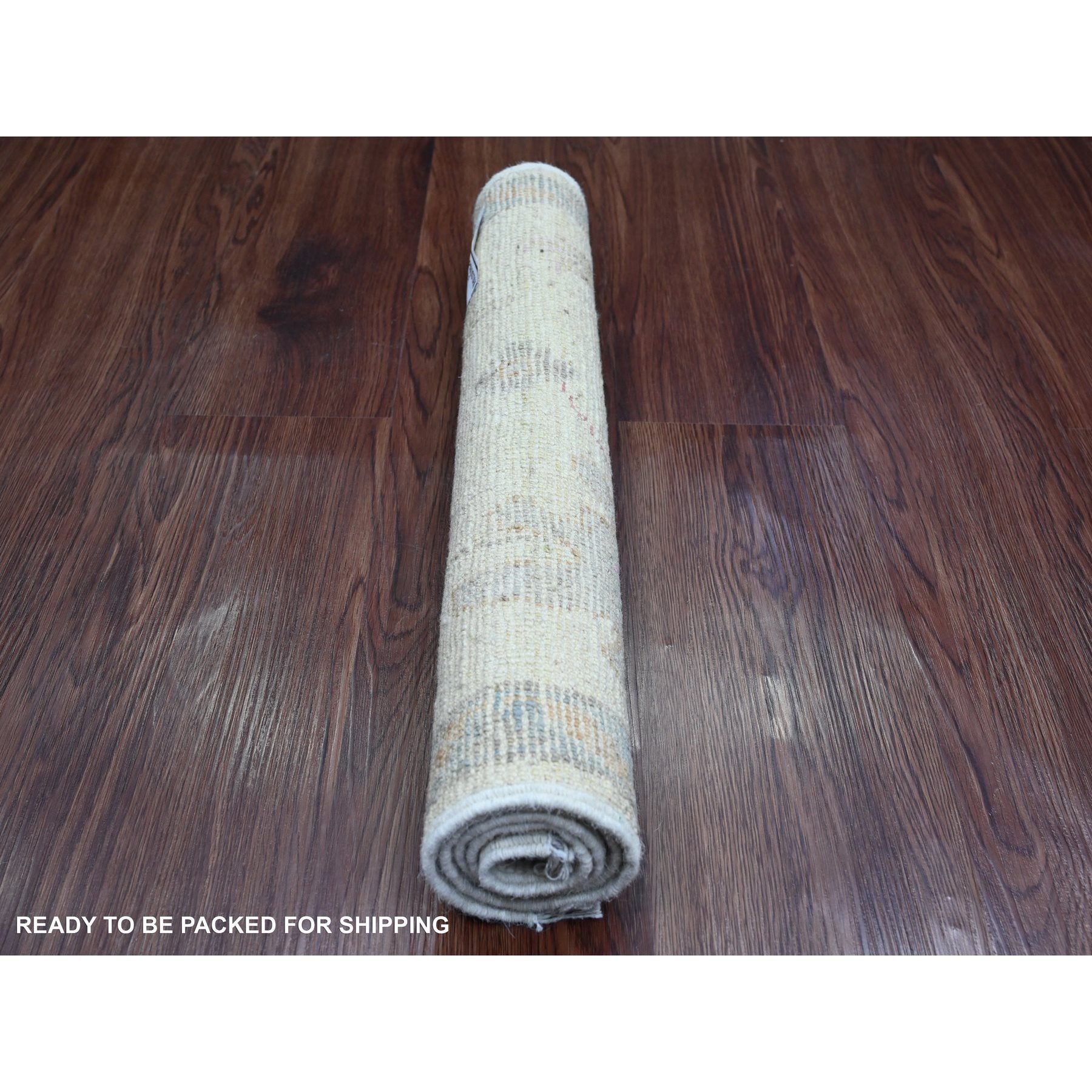 2'x3' Pristine White, Afghan Angora Oushak With Floral Pattern, Hand Knotted, Vegetable Dyes, 100% Wool, Mat, Oriental Rug FWR124542