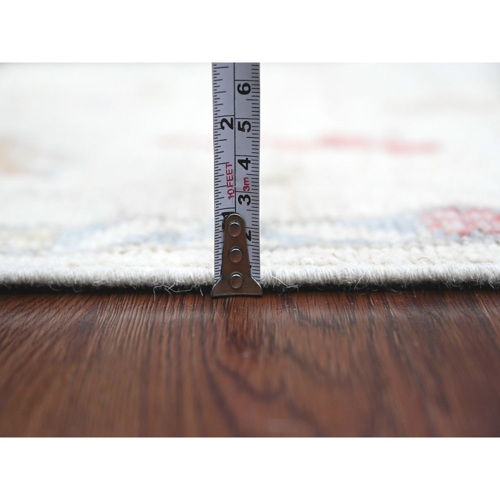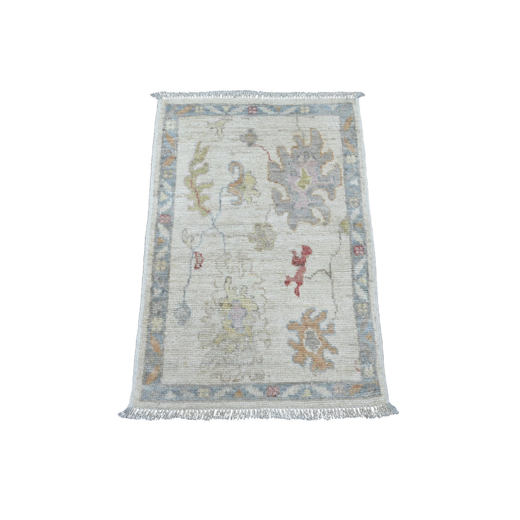 2'x3' Pristine White, Afghan Angora Oushak With Leaf Design, Hand Knotted, Vegetable Dyes, Pure Wool, Mat, Oriental Rug FWR123606
