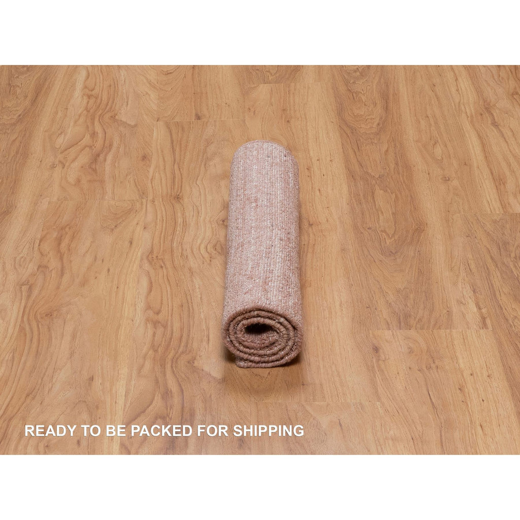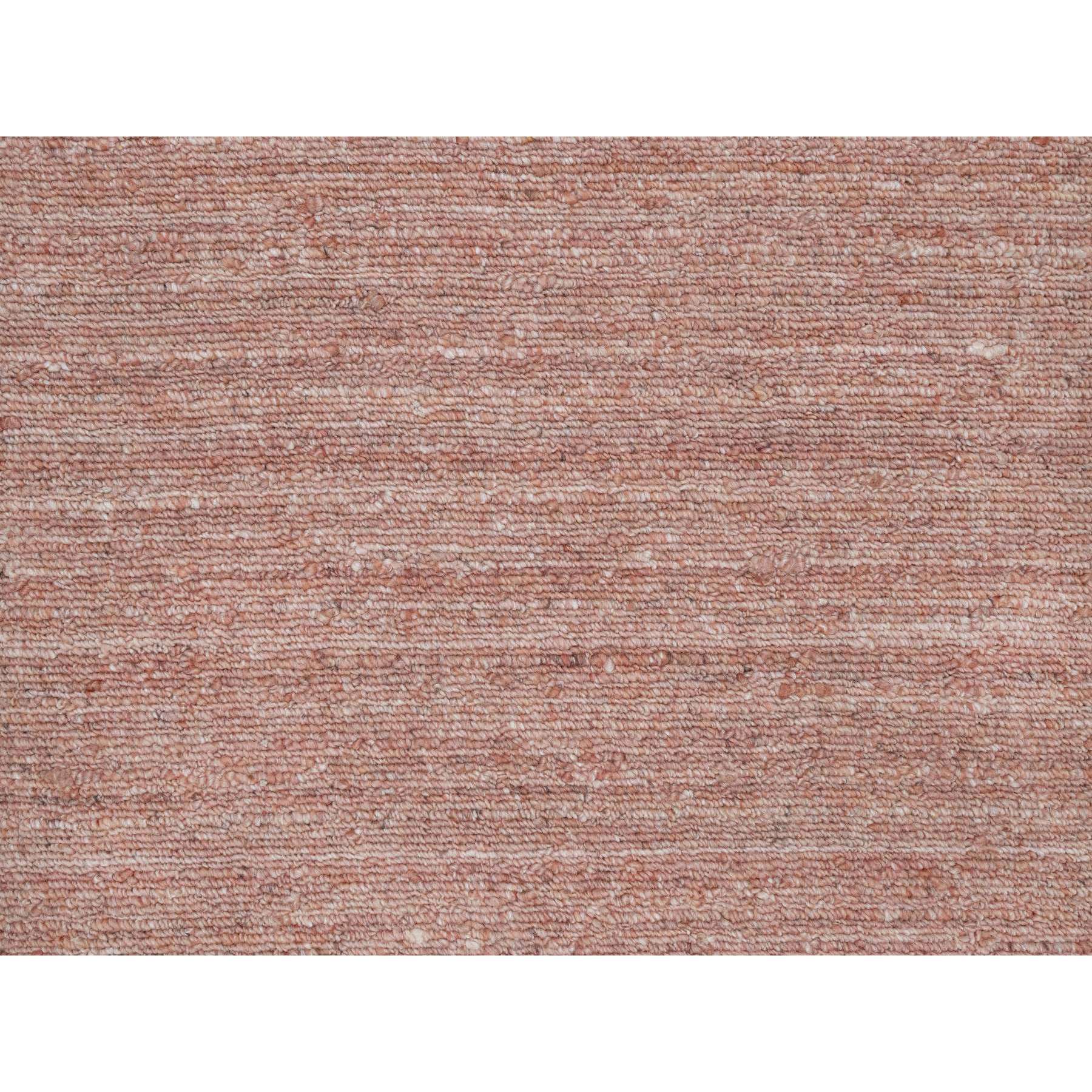2'x3' Rose Pink, Soft To The Touch Pile, Pure Wool, Plain Modern Striae Design, Hand Loomed, Mat, Oriental Rug FWR547230