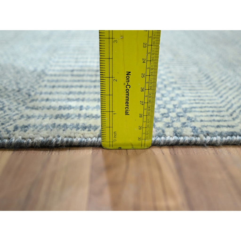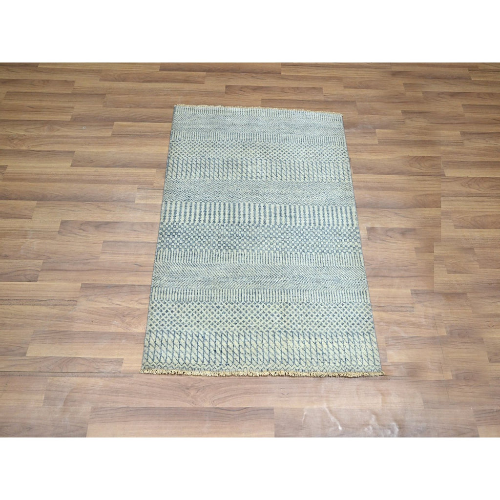 2'x3' Ruddy Blue, Modern Grass Design, Hand Knotted, Wool With Touch Of Silk, Tone On Tone, Lush And Plush, Sample, Mat, Oriental Rug FWR458808