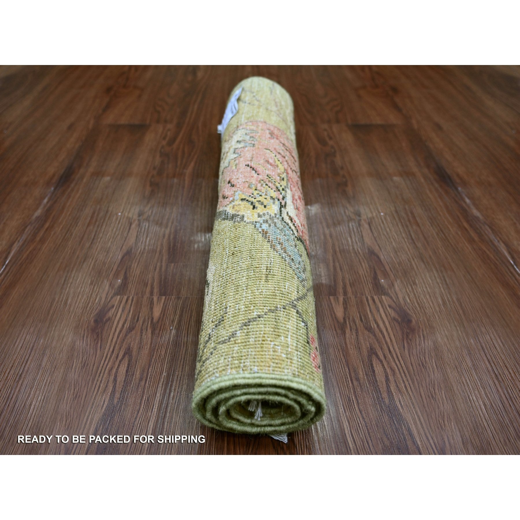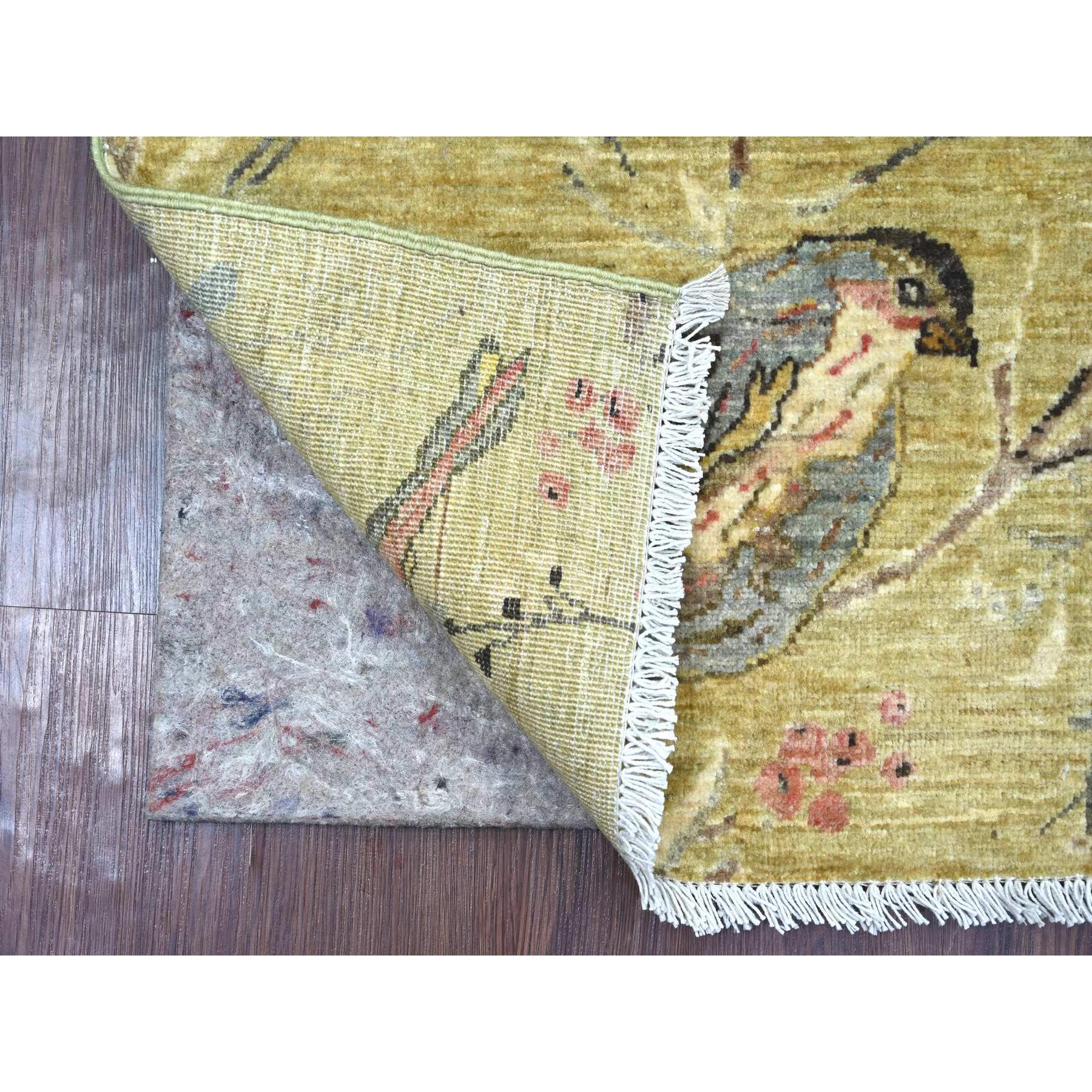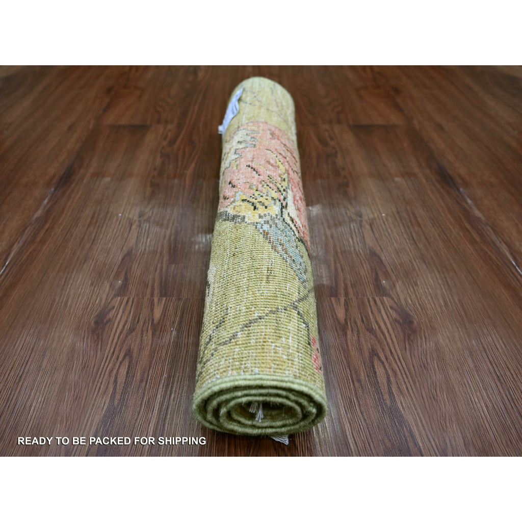2'x3' Savannah Green, Hand Knotted, Sparrows On The Tree, Peshawar, Densely Woven, High Mountain Wool, Soft To The Touch, Mat, Sample, Oriental Rug FWR126420