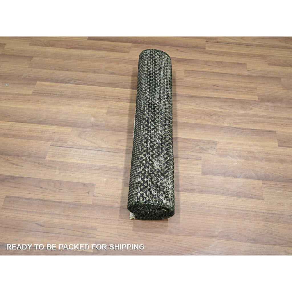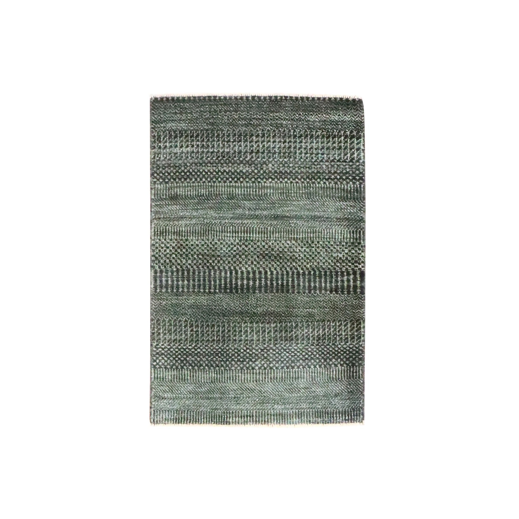 2'x3' Seaweed Green, Modern Grass Design, Lush And Plush, Hand Knotted, Wool With Touch Of Silk, Tone On Tone, Sample, Mat, Oriental Rug FWR459186