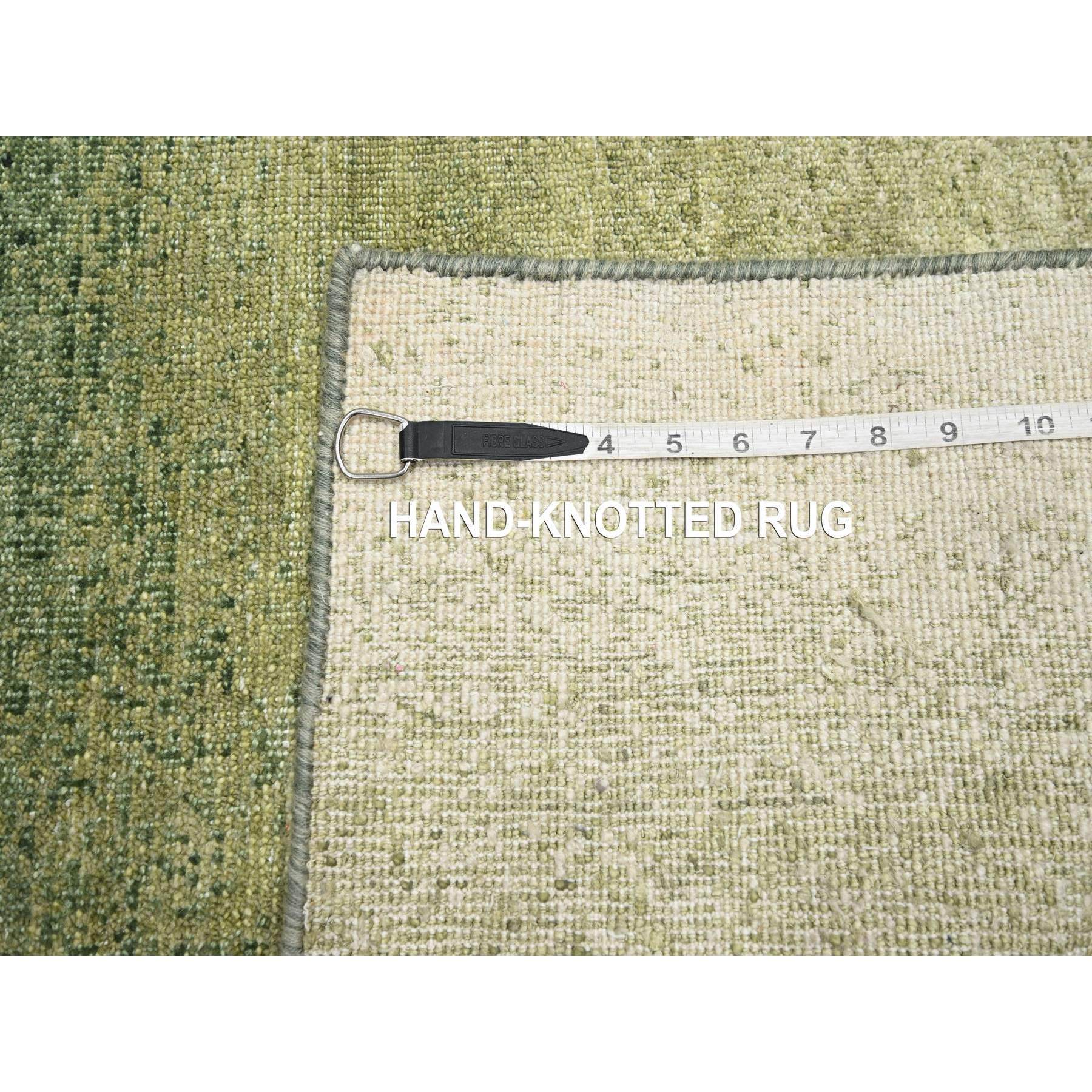2'x3' Shades Of Green, 100% Silk, Textured With Gradation Design, Shaved Low, Sample, Mat, Oriental Rug FWR453450