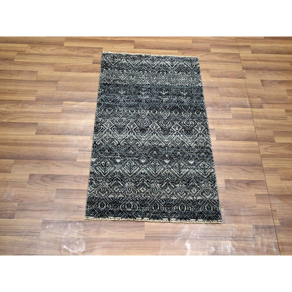 2'x3' Shadow Gray, Hand Knotted, Kohinoor Herat With Small Repetitive Diamond Shaped Geometric Elements, Tone On Tone, Soft To The Touch, Pure Wool, Mat, Oriental Rug FWR456942