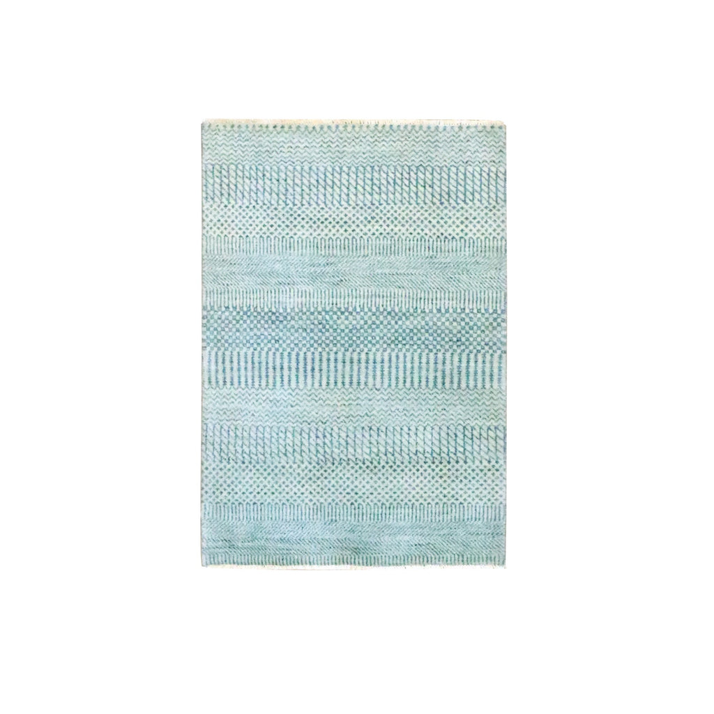 2'x3' Sky Blue, Modern Grass Design, Hand Knotted, Wool With Touch Of Silk, Tone On Tone, Lush And Plush, Sample, Mat, Oriental Rug FWR458844