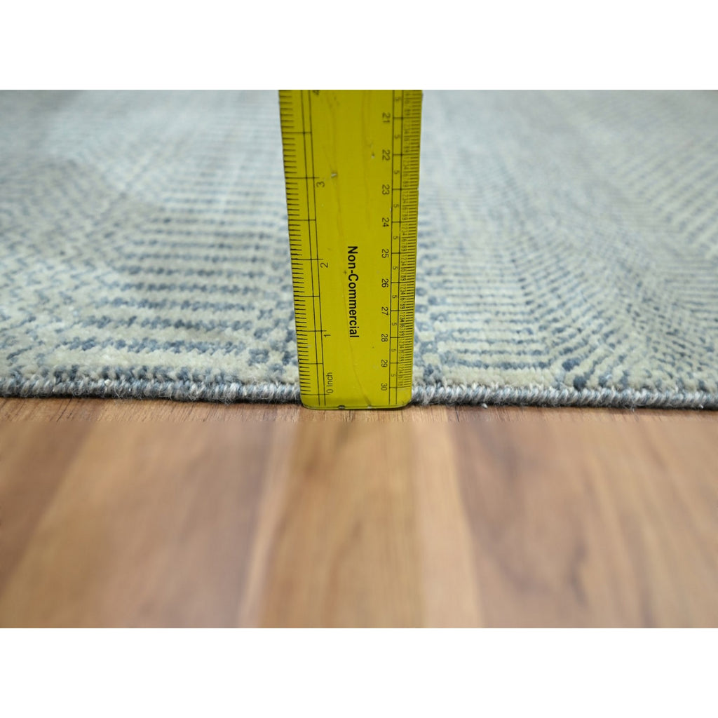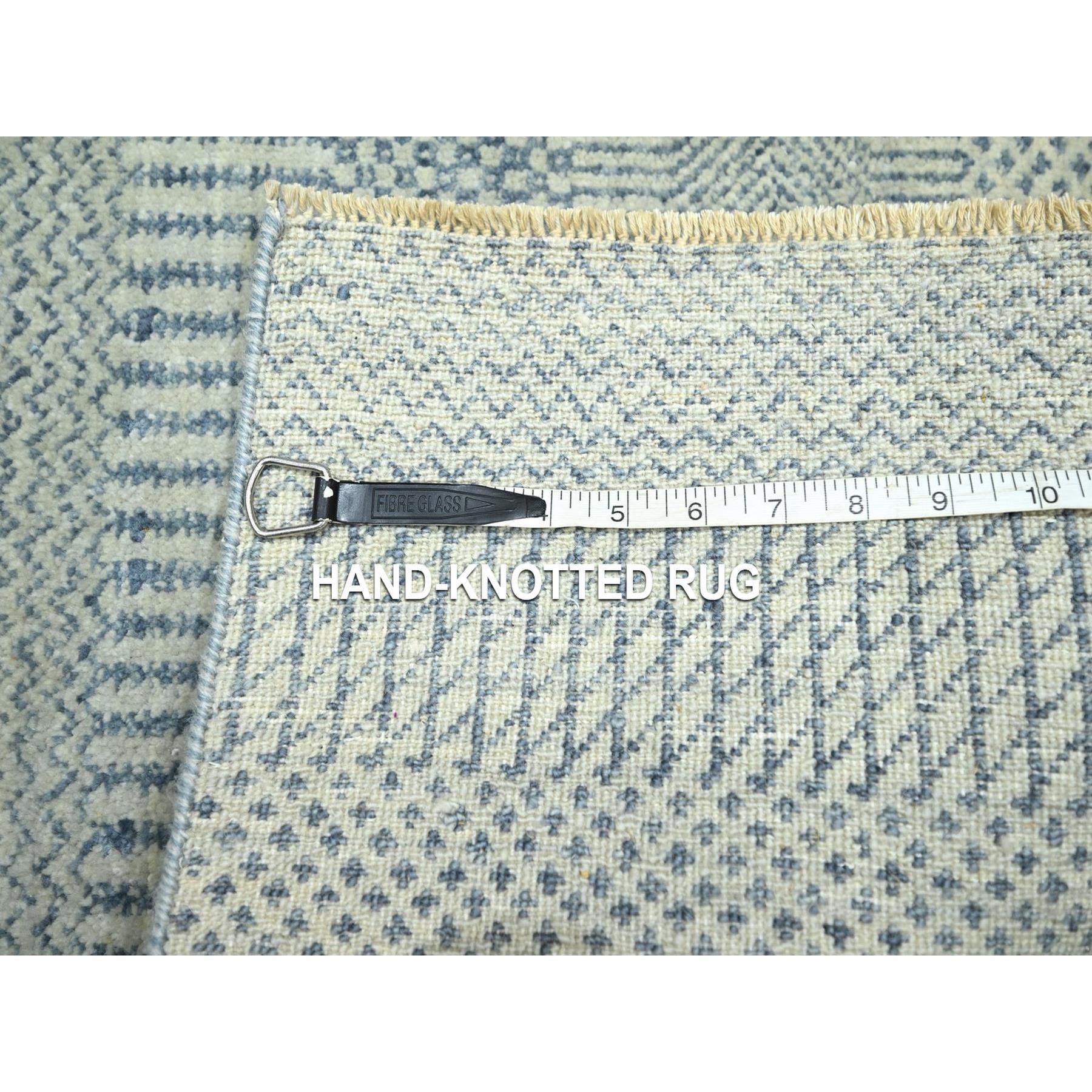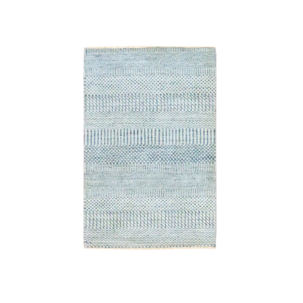 2'x3' Sky Blue, Tone On Tone, Modern Grass Design, Hand Knotted, Wool With Touch Of Silk, Lush And Plush, Sample, Mat, Oriental Rug FWR459744