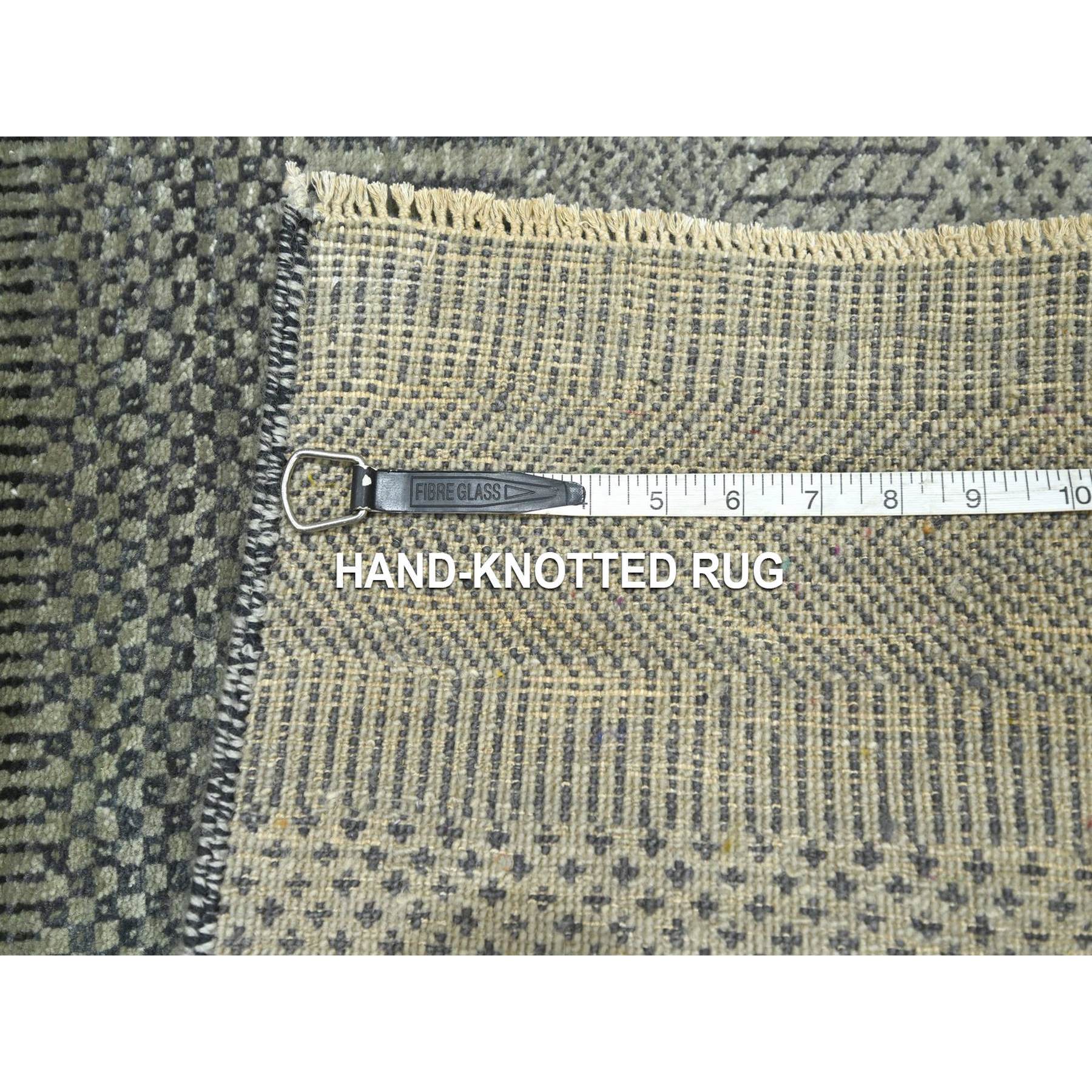 2'x3' Sonic Gray, Modern Grass Design, Hand Knotted, Wool With Touch Of Silk, Tone On Tone, Lush And Plush, Sample, Mat, Oriental Rug FWR459888