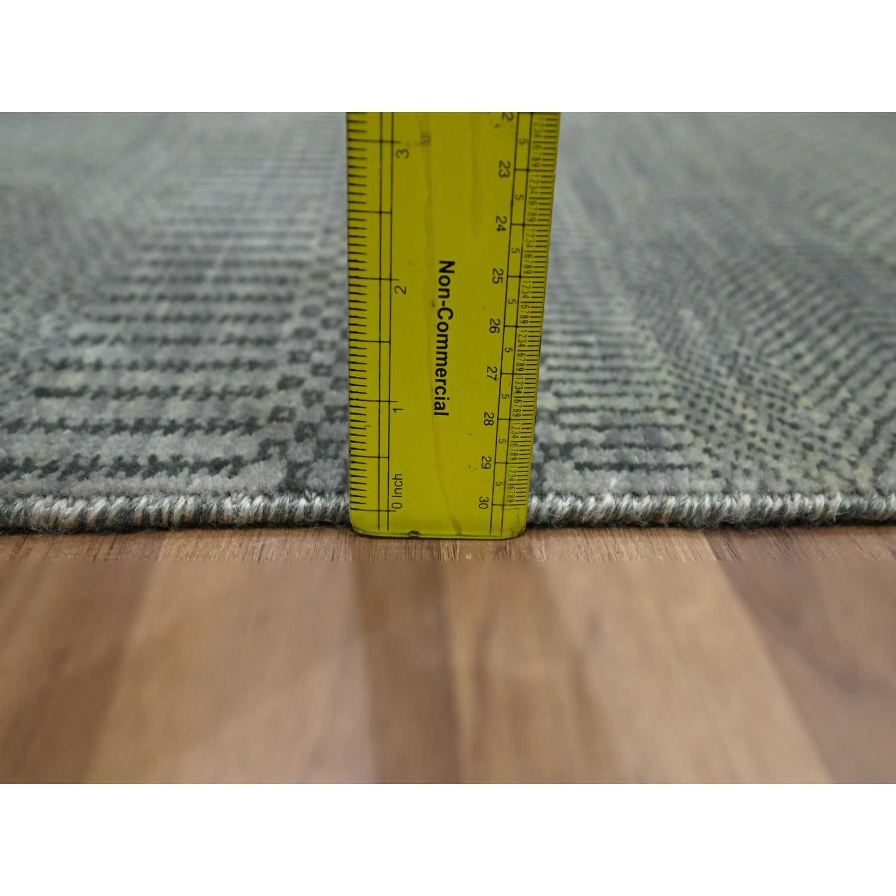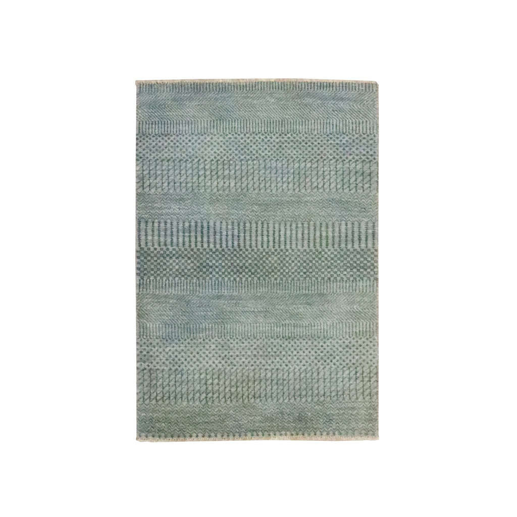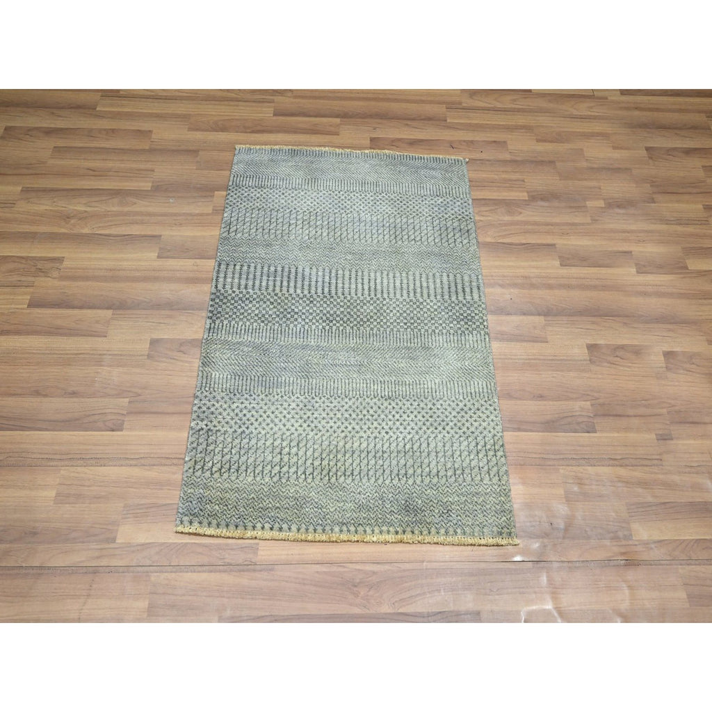 2'x3' Spanish Gray, Modern Grass Design, Hand Knotted, Wool With Touch Of Silk, Tone On Tone, Lush And Plush, Mat, Sample, Oriental Rug FWR459990