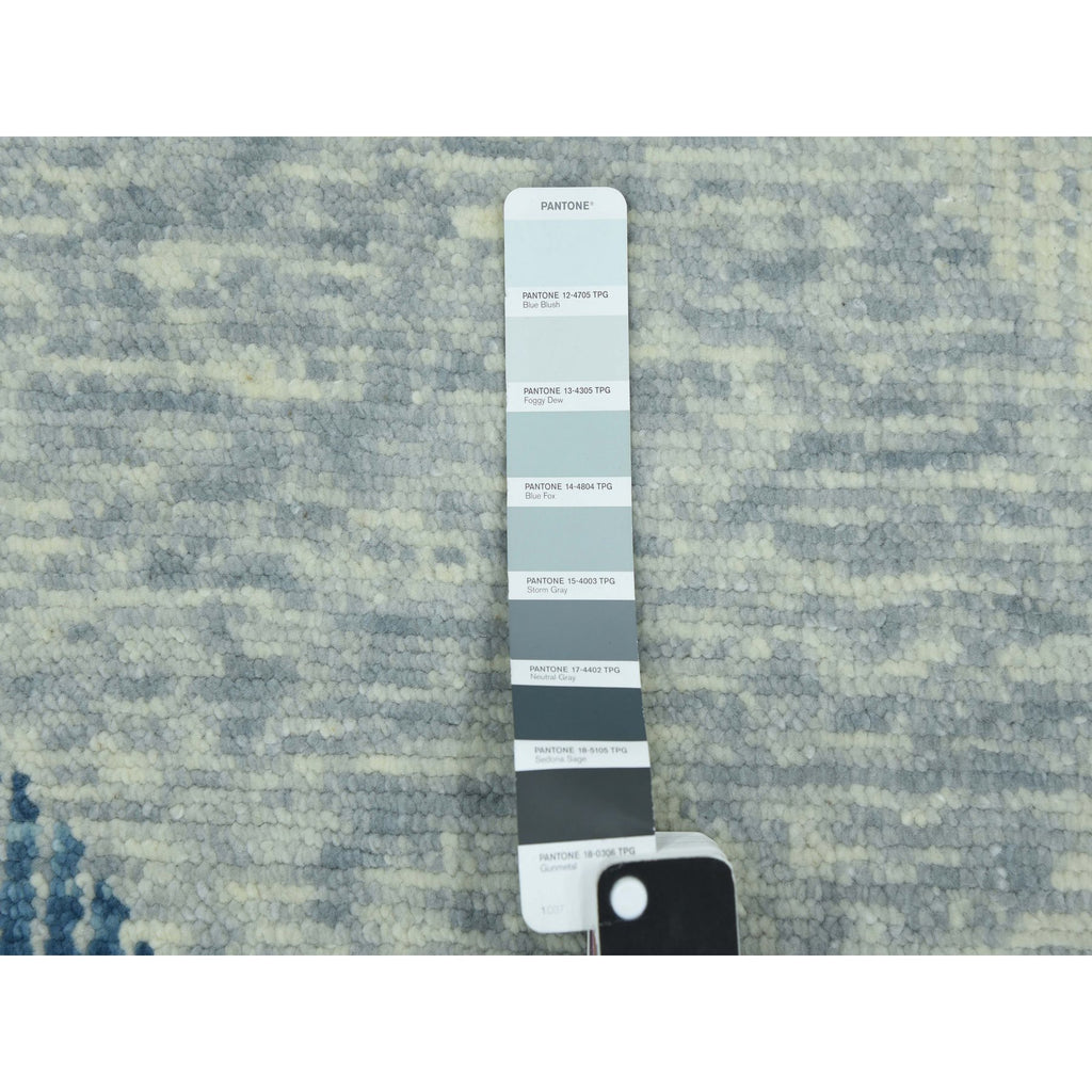 2'x3' Stone Blue, Extra Soft Wool Hand Knotted, Geometric Art Deco Collection, Mat Oriental Rug FWR476550