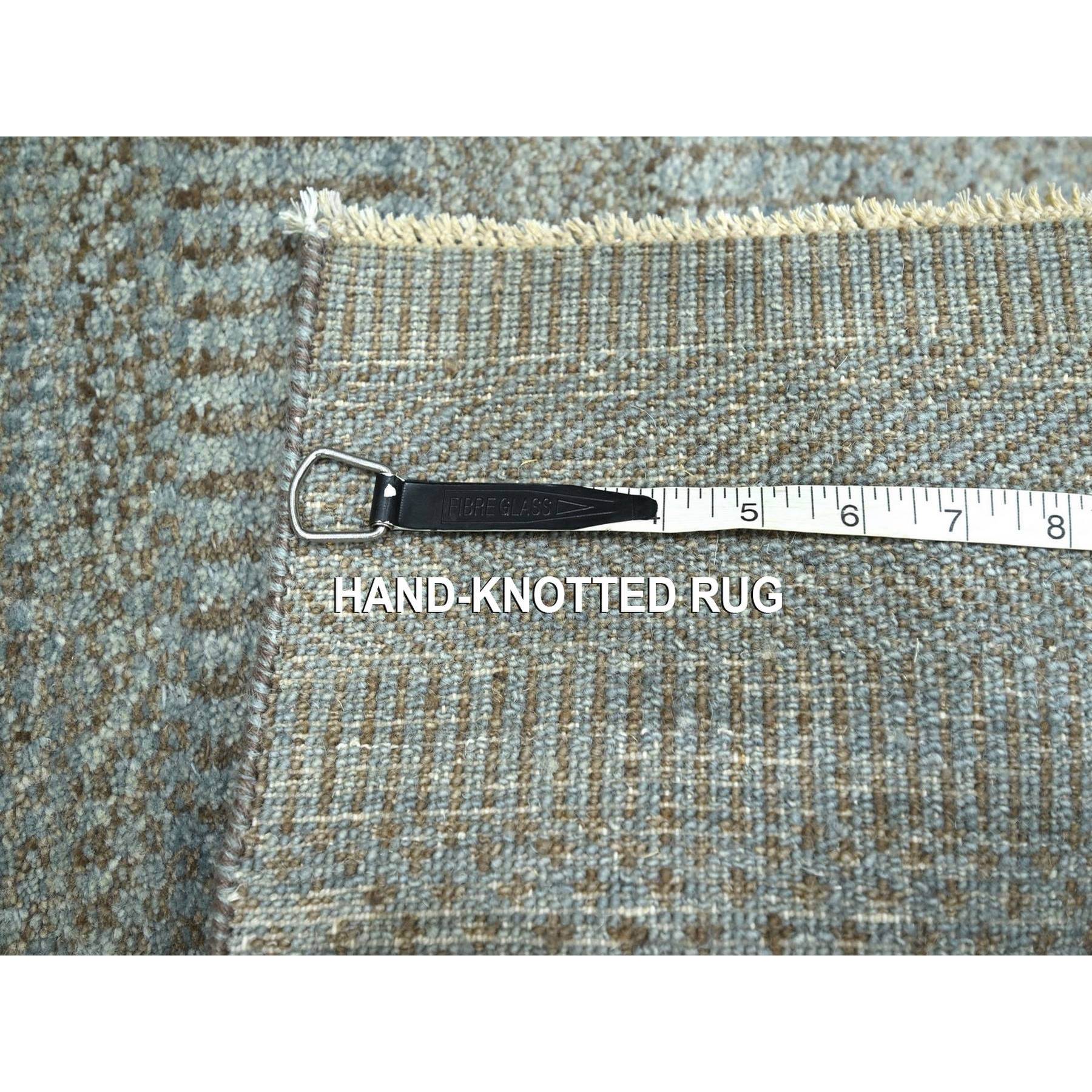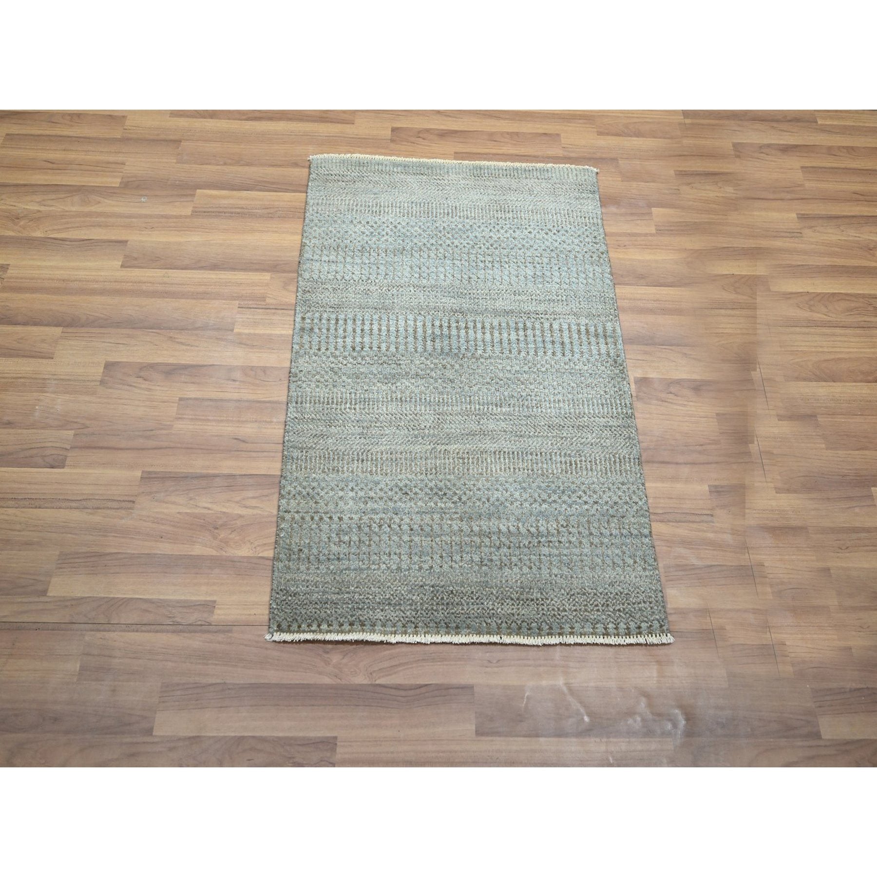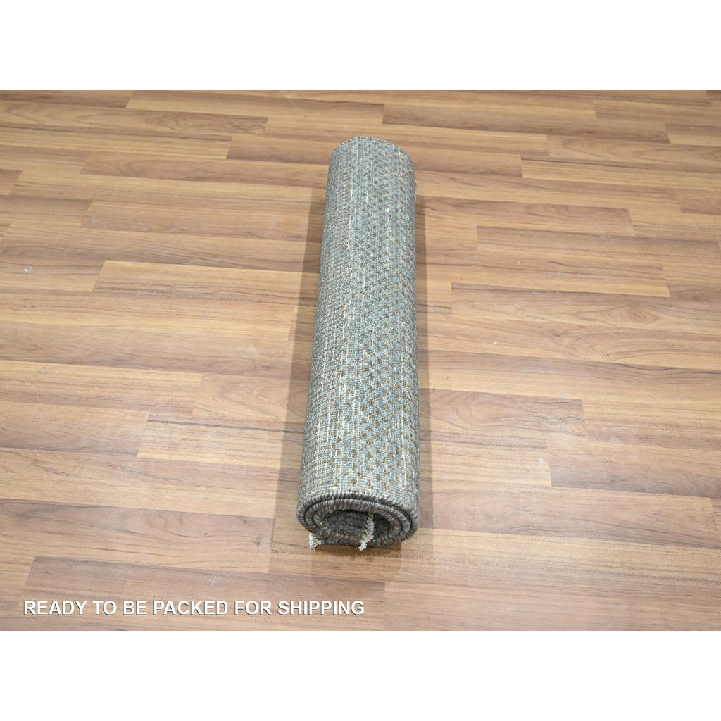 2'x3' Stone Blue, Modern Grass Design, Hand Knotted, Wool With Touch Of Silk, Tone On Tone, Lush And Plush, Sample, Mat, Oriental Rug FWR458940