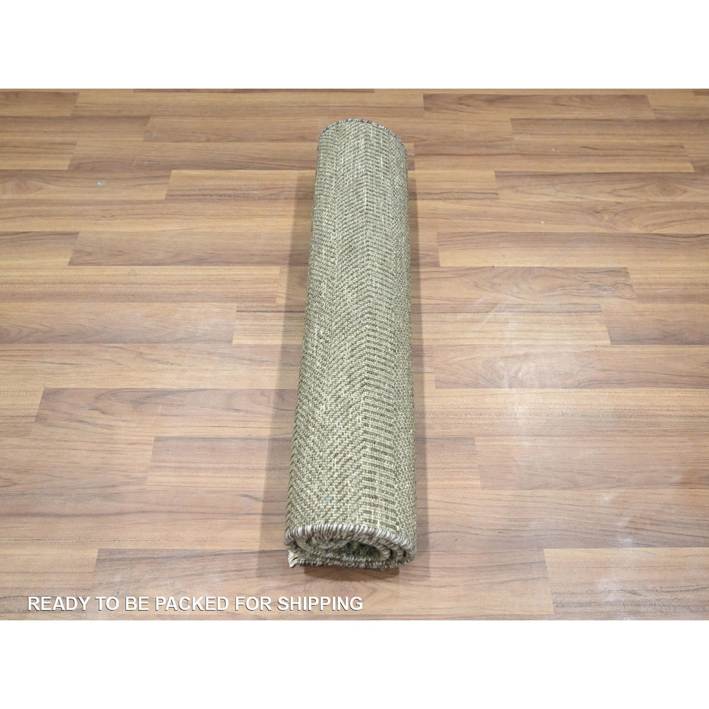 2'x3' Stone Gray, Hand Knotted, Wool With Touch Of Silk, Tone On Tone, Lush And Plush, Sample, Modern Grass Design, Mat, Oriental Rug FWR458886