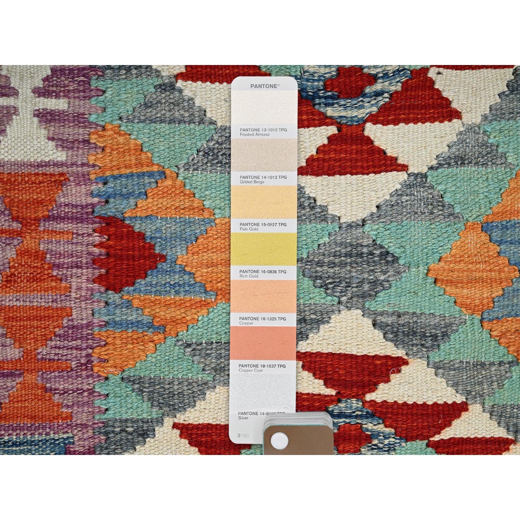 2'x3' Teal Blue, Afghan Kilim With Colorful Geometric Pattern, Vegetable Dyes, Pure Wool, Hand Woven, Flat Weave, Reversible, Mat, Oriental Rug FWR7044