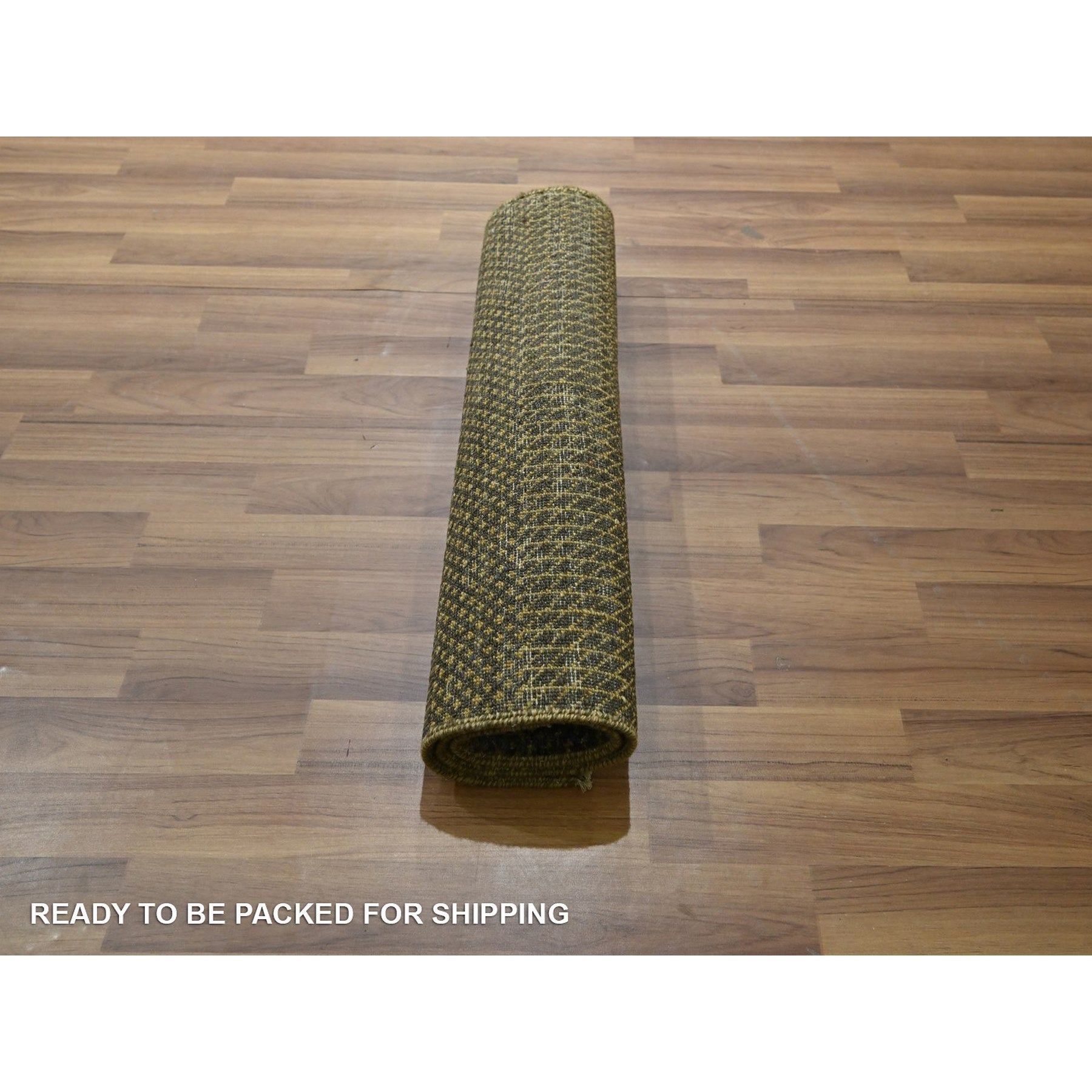 2'x3' Umber Brown, Hand Knotted, Modern Grass Design, Wool With Touch Of Silk, Tone On Tone, Lush And Plush, Sample, Mat, Oriental Rug FWR459894
