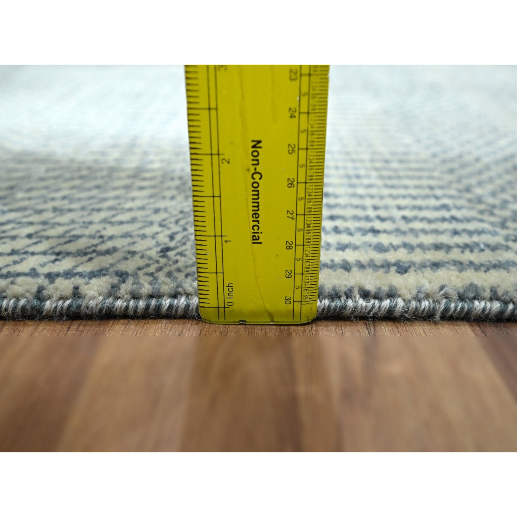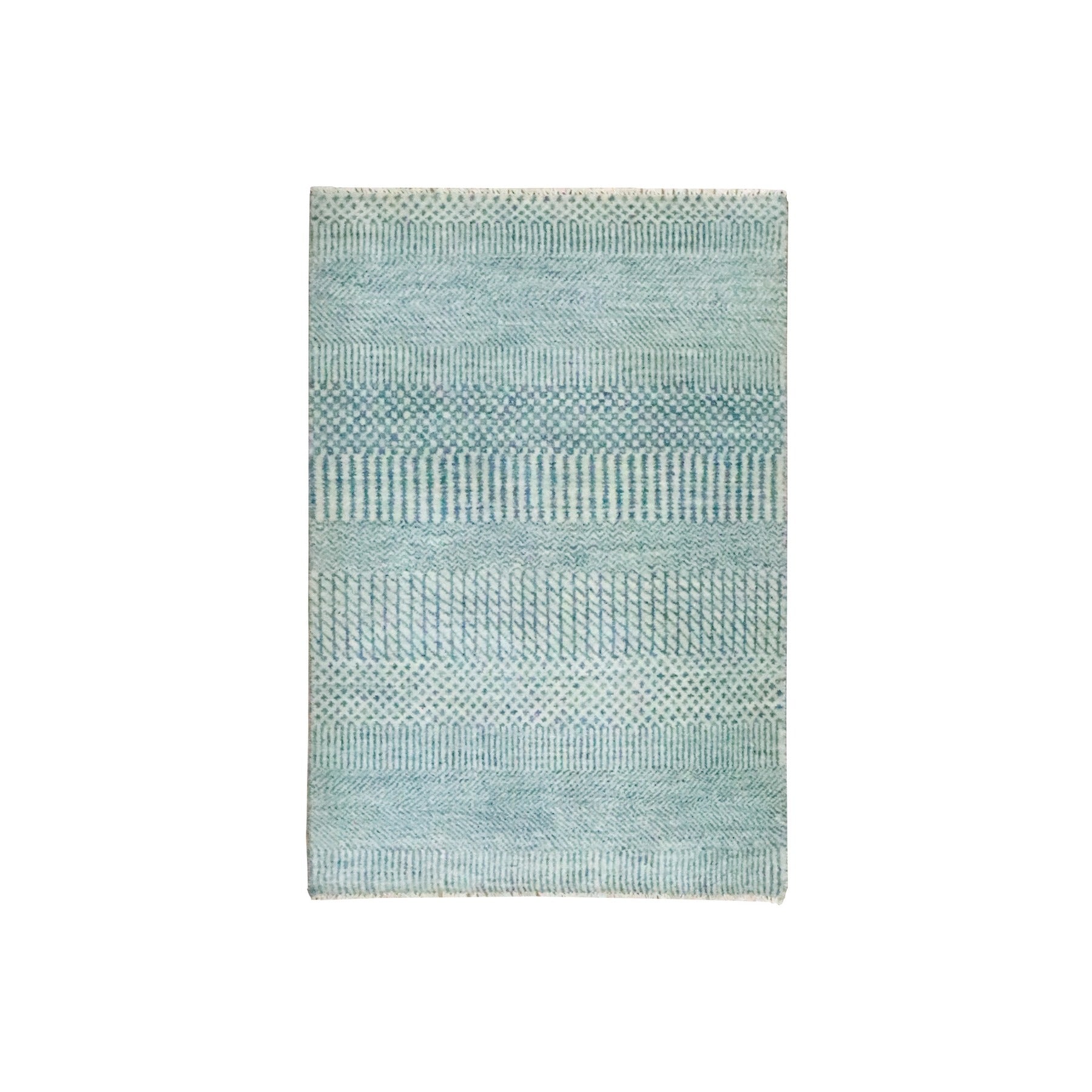 2'x3' Yonder Blue, Modern Grass Design, Hand Knotted, Wool With Touch Of Silk, Tone On Tone, Lush And Plush, Sample, Mat, Oriental Rug FWR459762