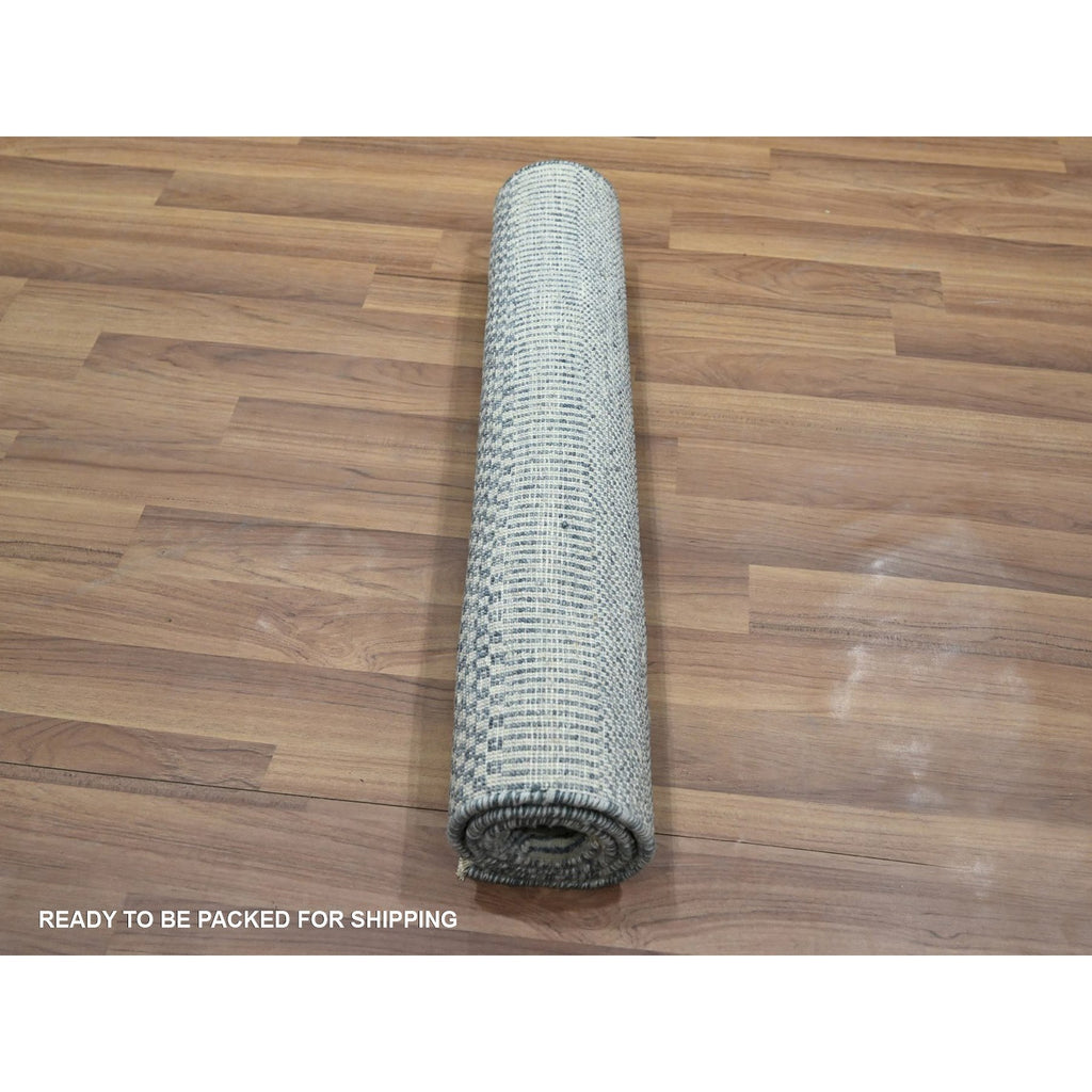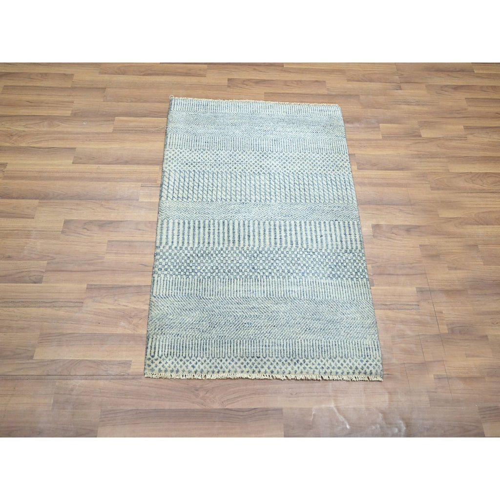 2'x3' Yonder Blue, Modern Grass Design, Tone On Tone, Hand Knotted, Wool With Touch Of Silk, Lush And Plush, Mat, Sample, Oriental Rug FWR458826
