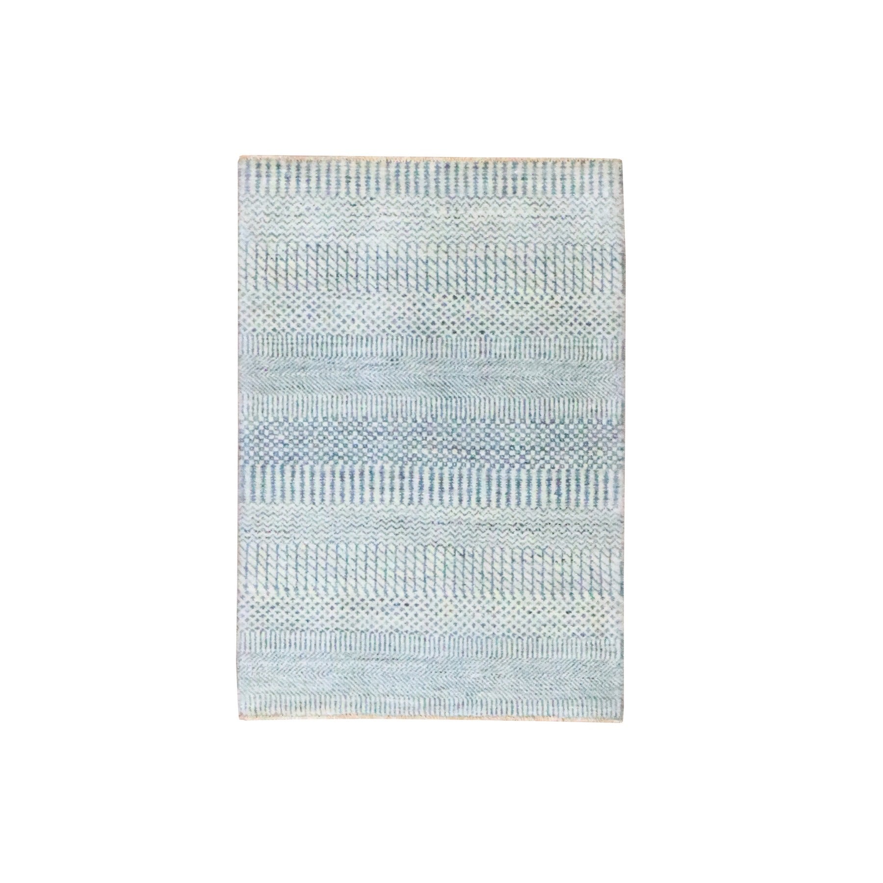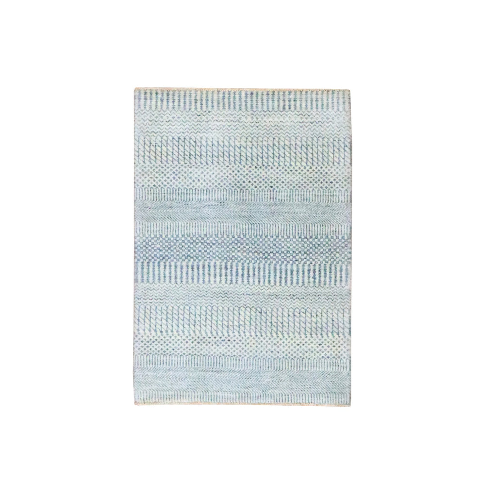 2'x3' Yonder Blue, Tone On Tone, Modern Grass Design, Hand Knotted, Wool With Touch Of Silk, Lush And Plush, Mat, Sample, Oriental Rug FWR458814