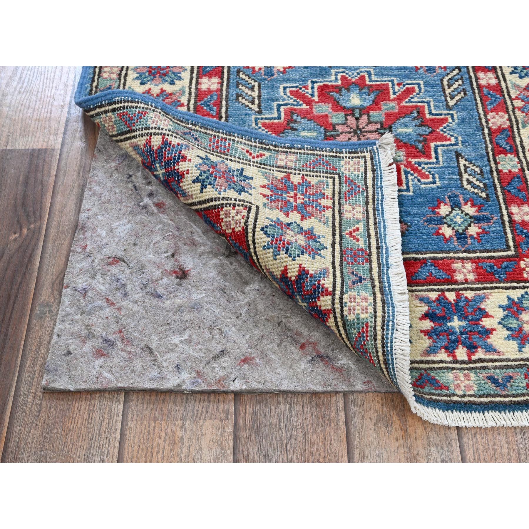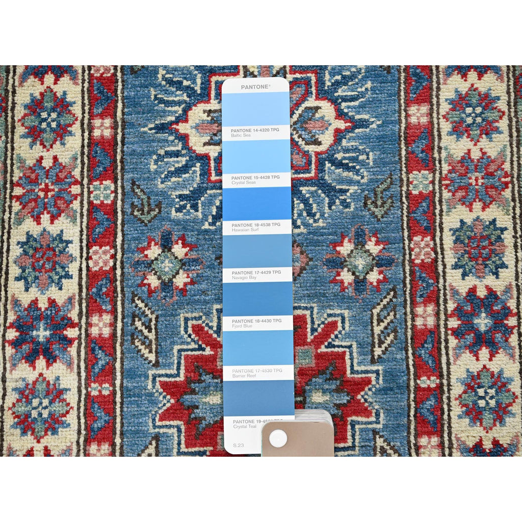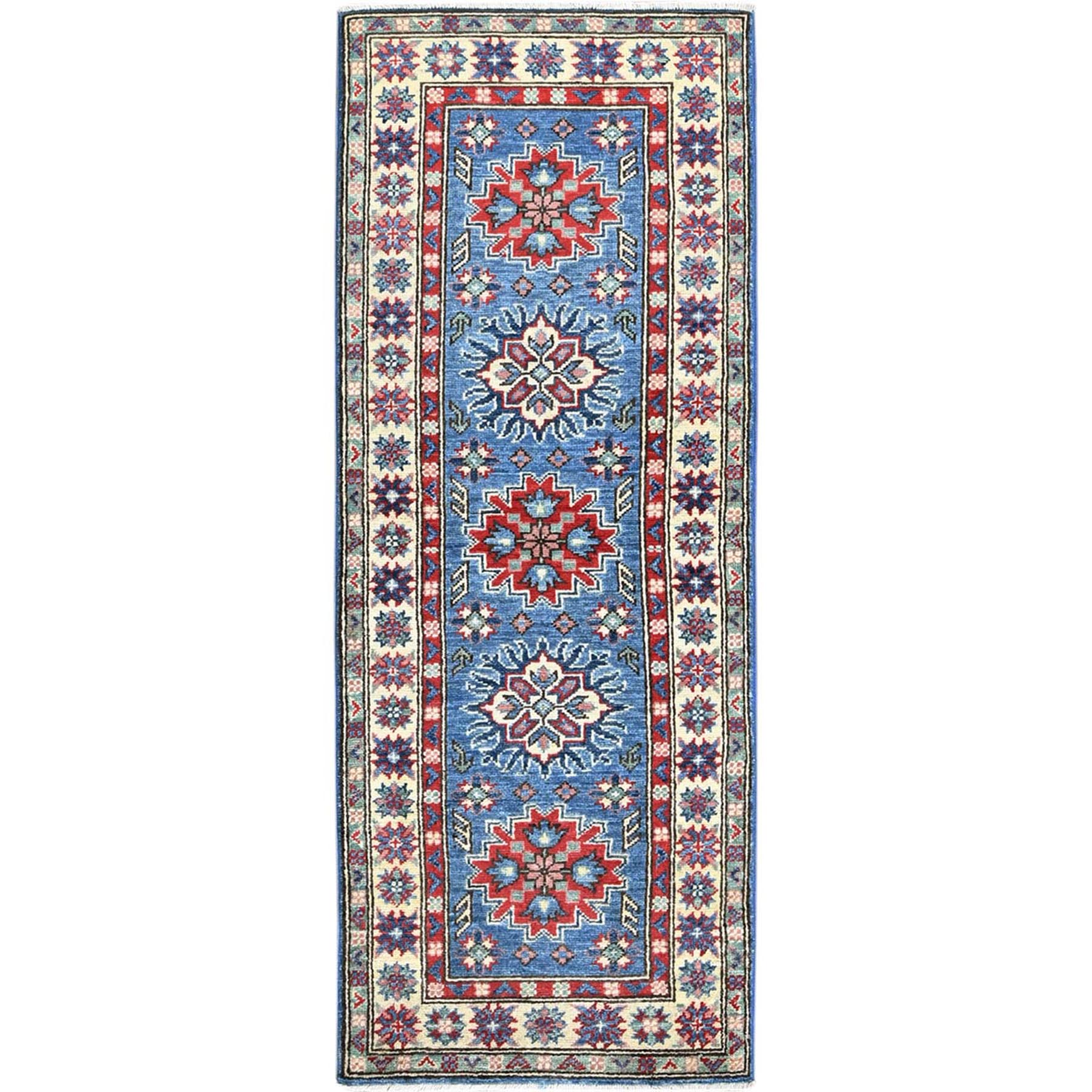 2'x5'10" Bayern Blue, Kazak With Tribal Medallions Design, Hand Knotted, Soft And Vibrant Wool, Denser Weave, Vegetable Dyes, Narrow Runner, Oriental Rug FWR3012