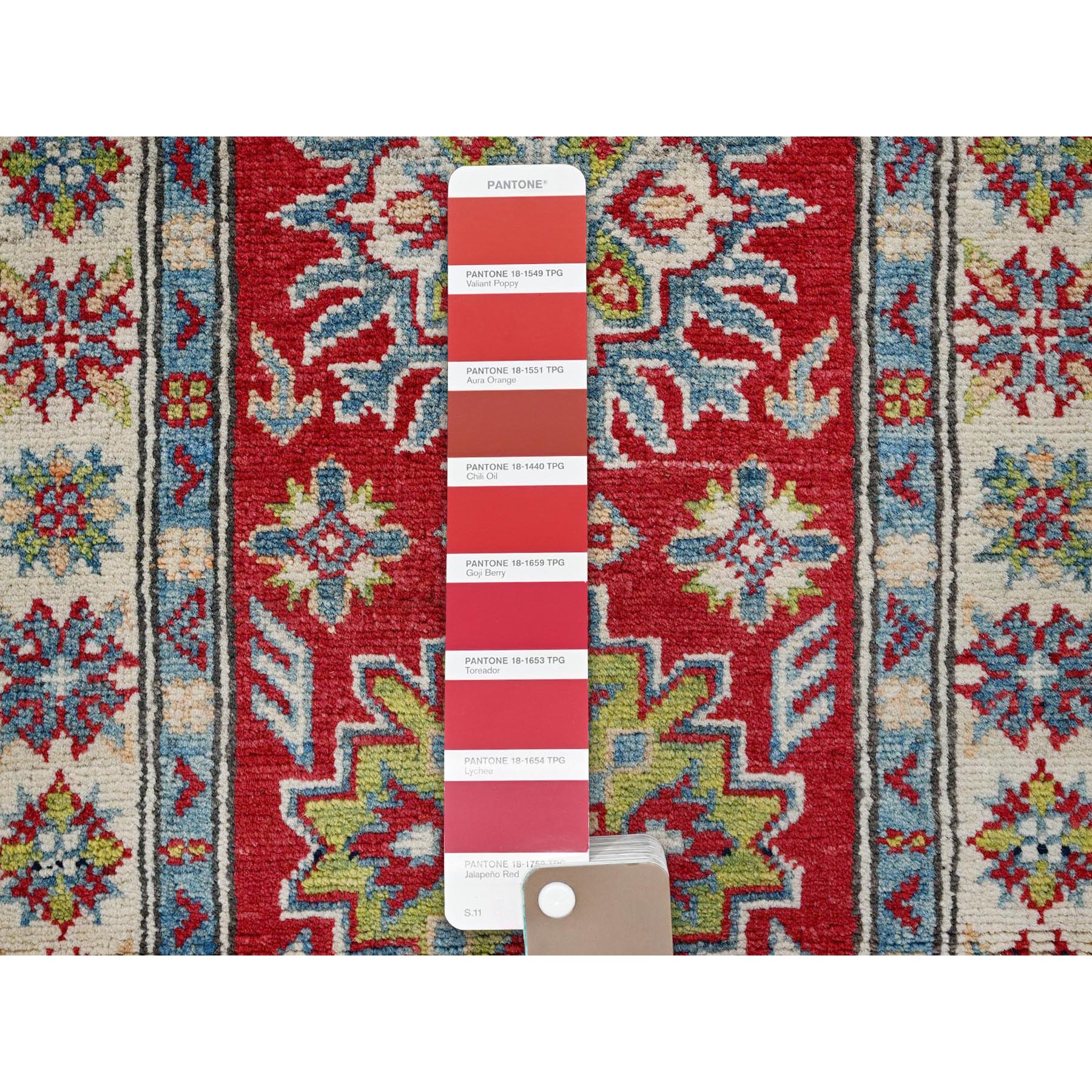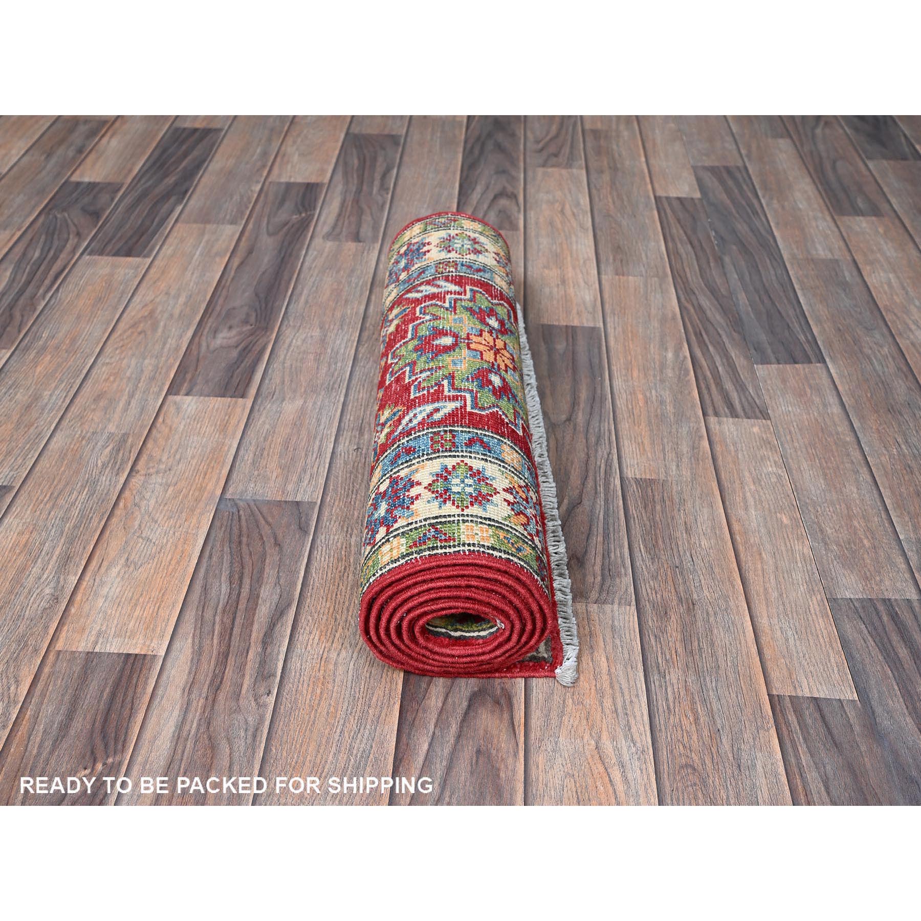 2'x5'10" Crimson Red, Kazak With Tribal Medallions Design, Soft And Shiny Wool, Hand Knotted, Denser Weave, Vegetable Dyes, Narrow Runner, Oriental Rug FWR3066