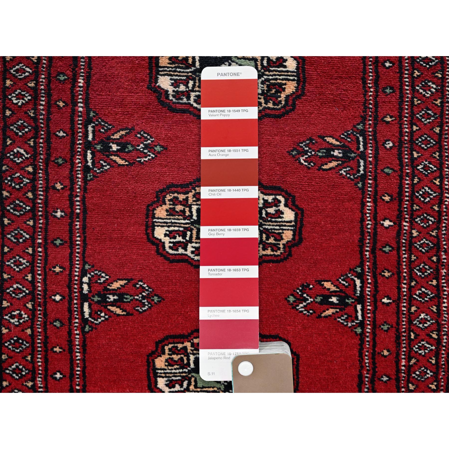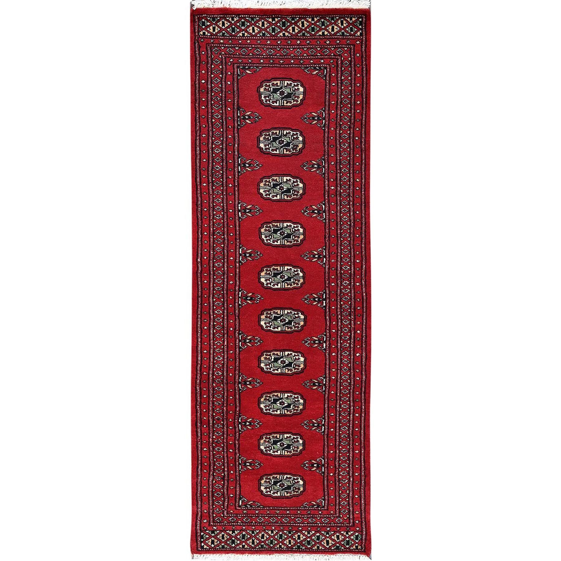 2'x6'2" Lychee Red, Princess Bokara With Tribal Medallions, Vegetable Dyes, Soft Wool, Hand Knotted, Narrow Runner, Oriental Rug FWR7788