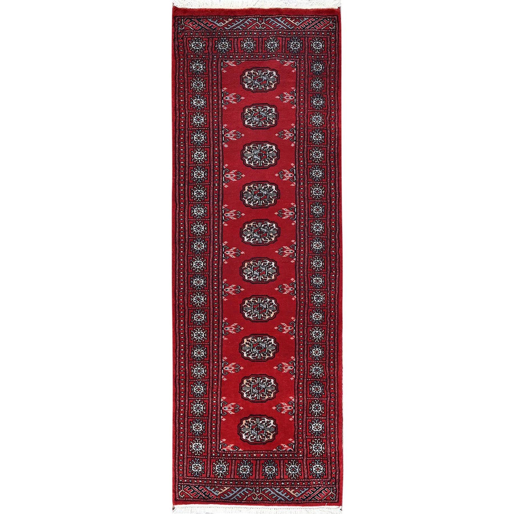 2'x6' Chili Red, Princess Bokara With Tribal Medallions, Vegetable Dyes, Soft And Velvety Wool, Hand Knotted, Narrow Runner, Oriental Rug FWR7770