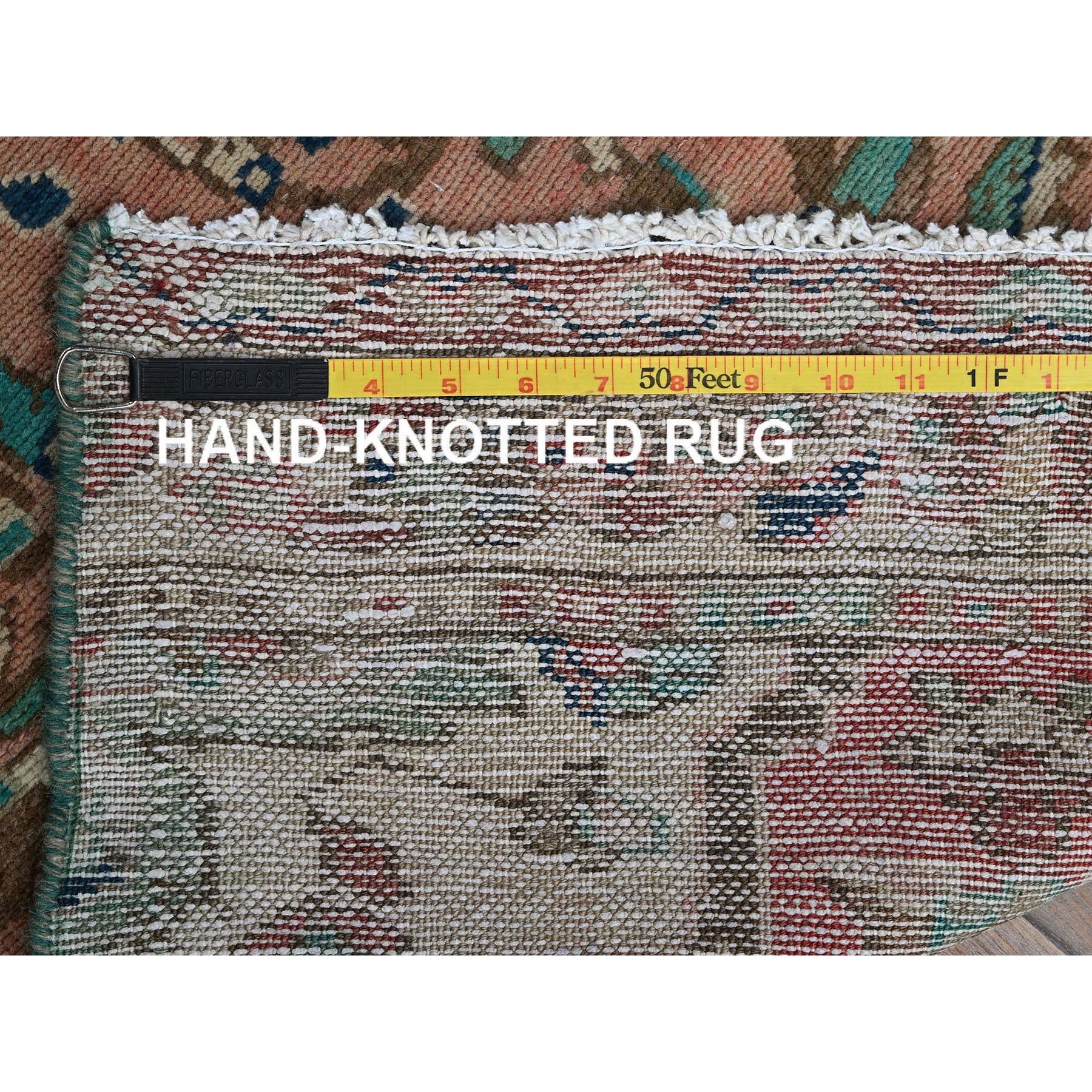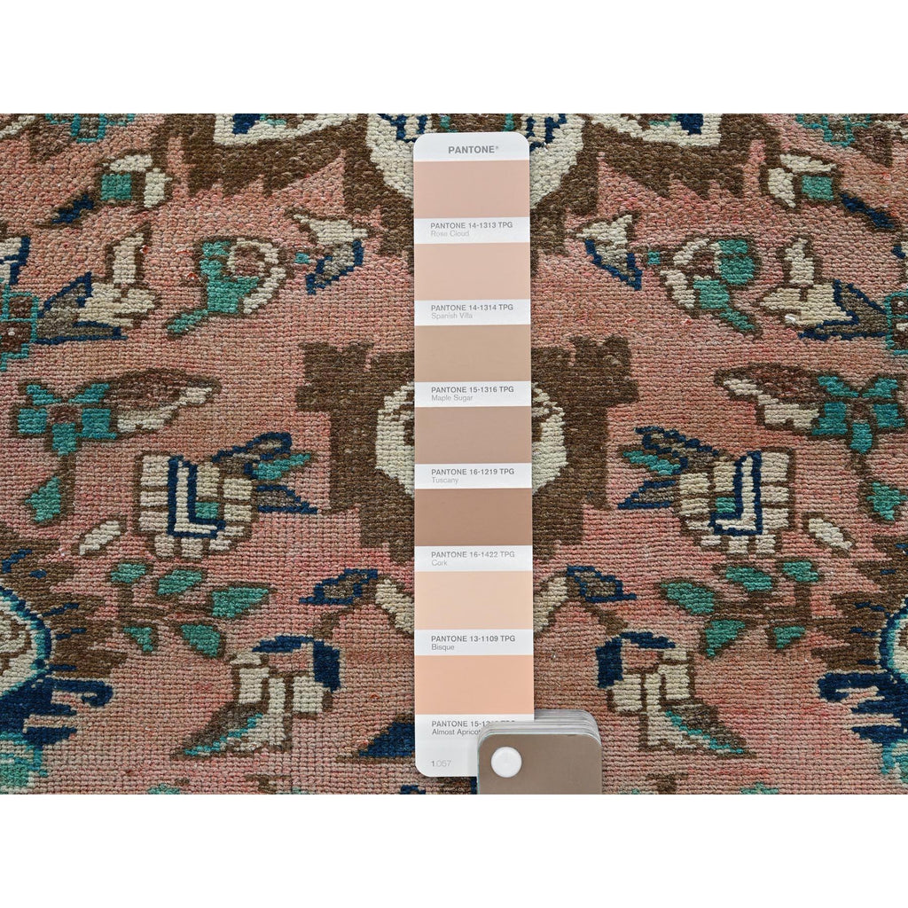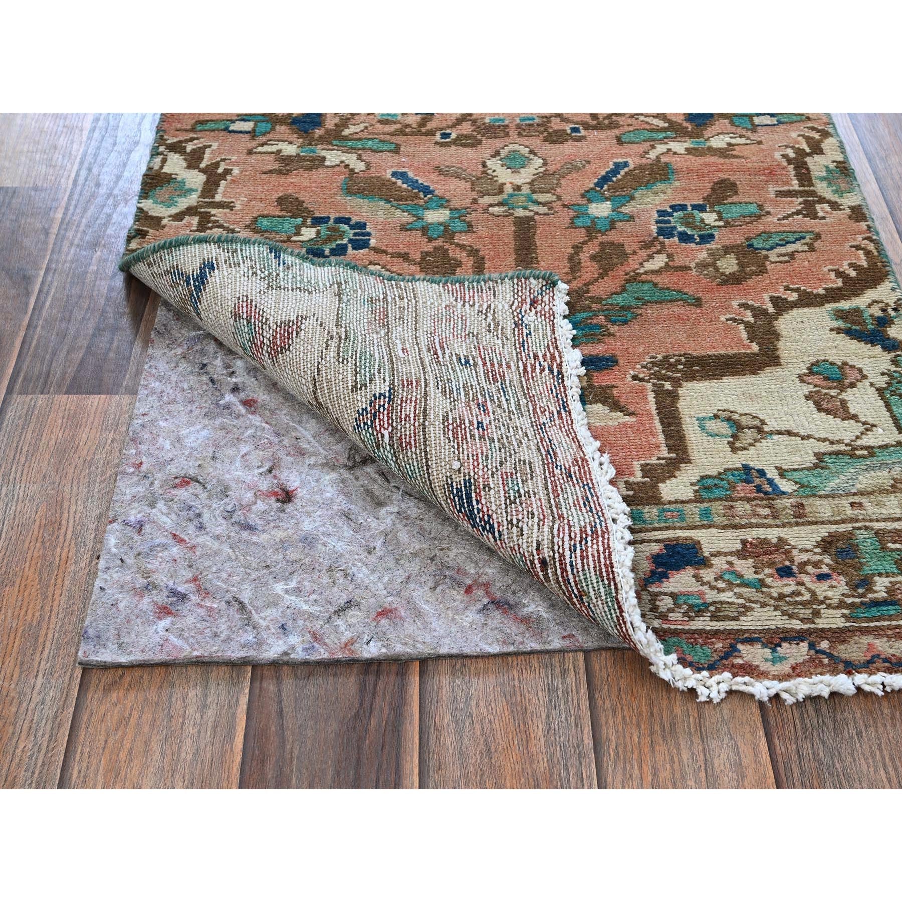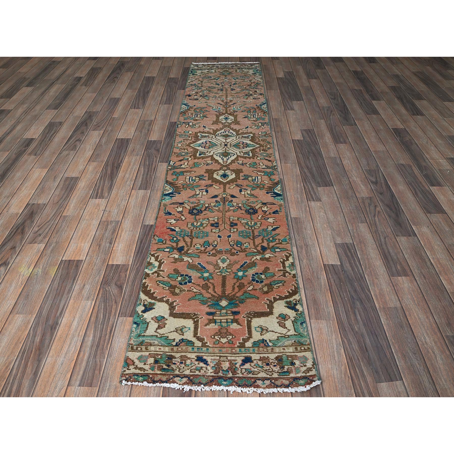 2'x9' Salmon Pink, Vintage Persian Heriz, Hand Knotted, 100% Wool, Sheared Low, Zero Pile, Good Condition, Sides And Ends Professionally Secured, Fragment, Narrow Runner, Oriental Rug FWR5046