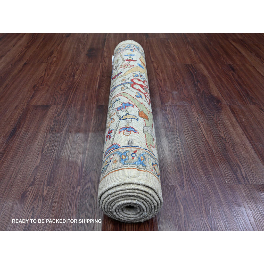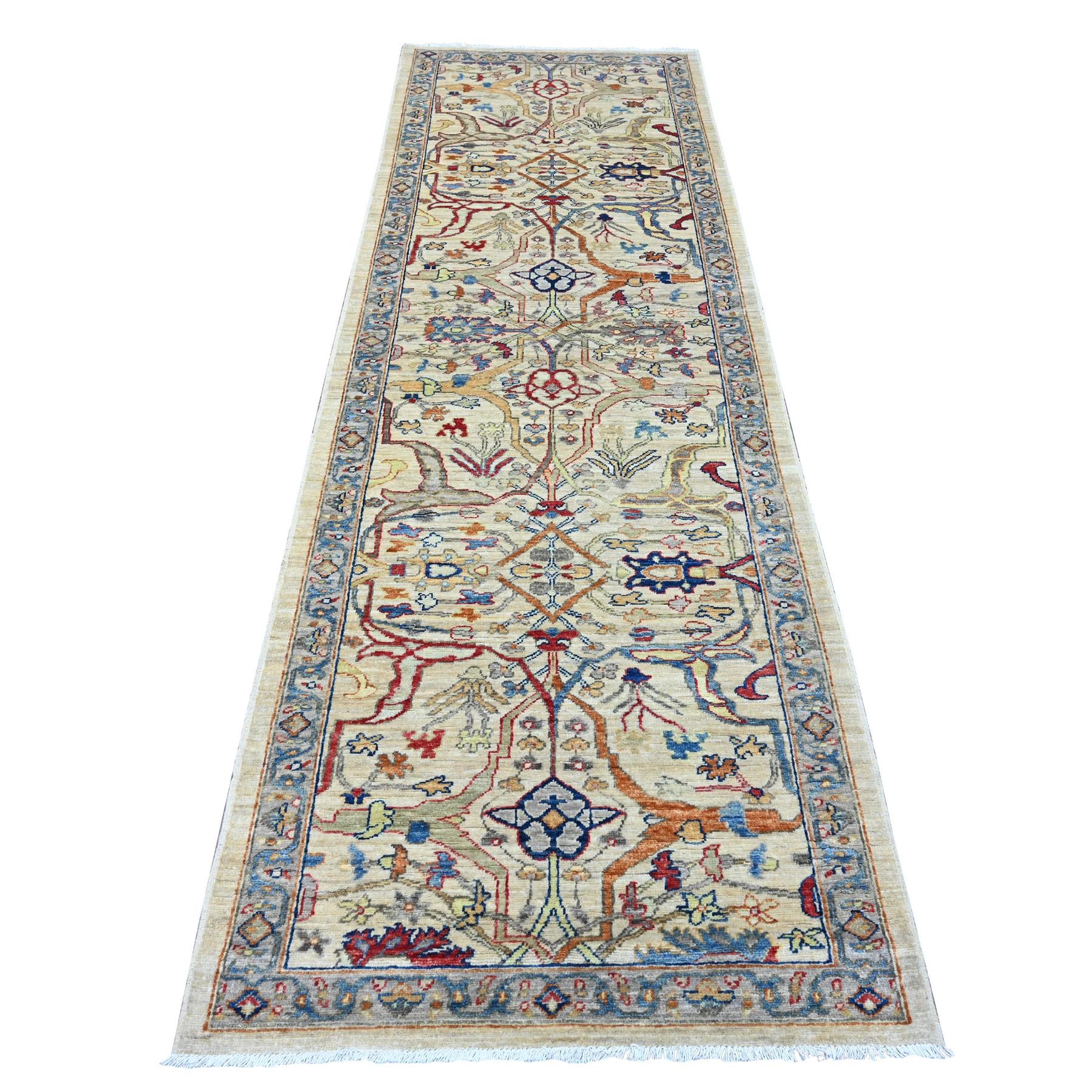 3'1"x10' Chiffon White, Peshawar With Bijar Garus Design, Aryana Collection, Hand Knotted, Vegetable Dyes, High Mountain Wool, Densely Woven, Runner, Oriental Rug FWR539010