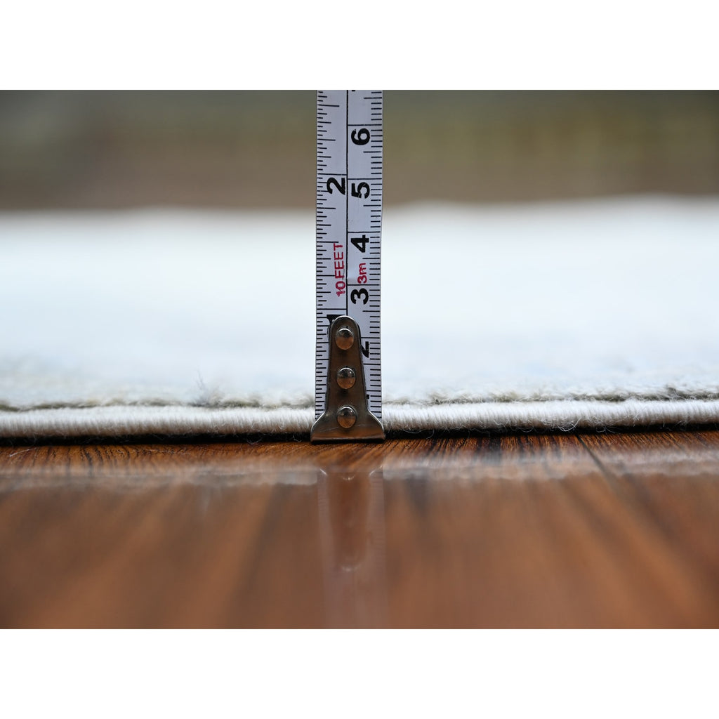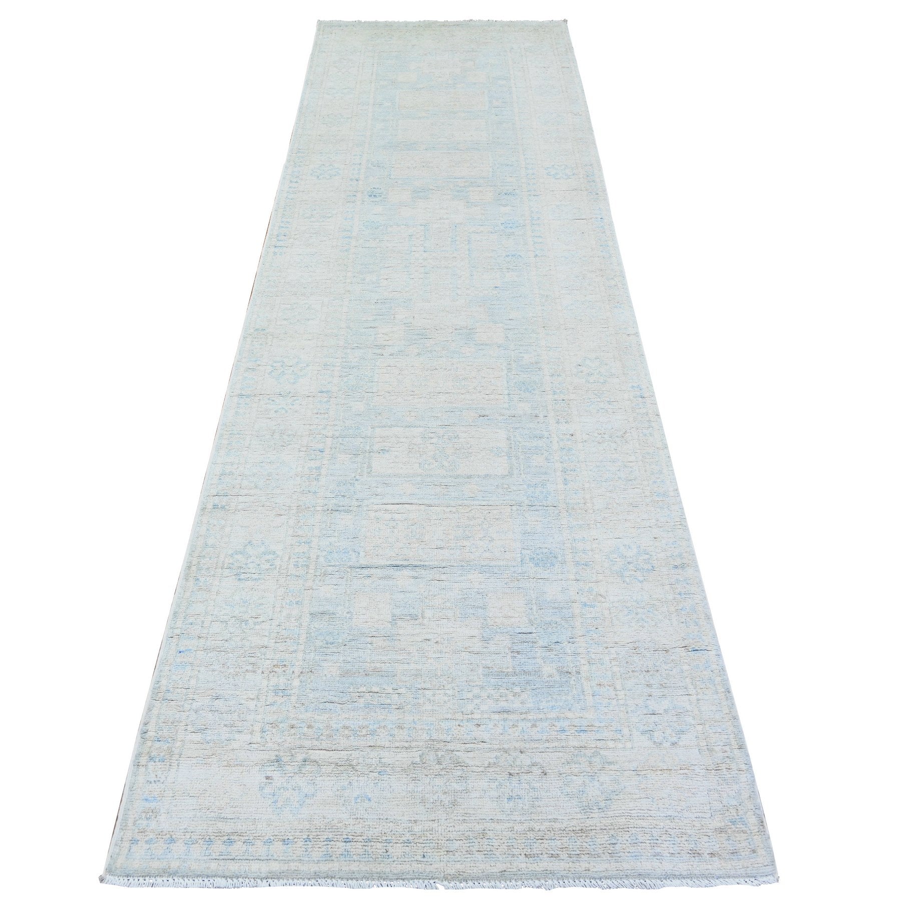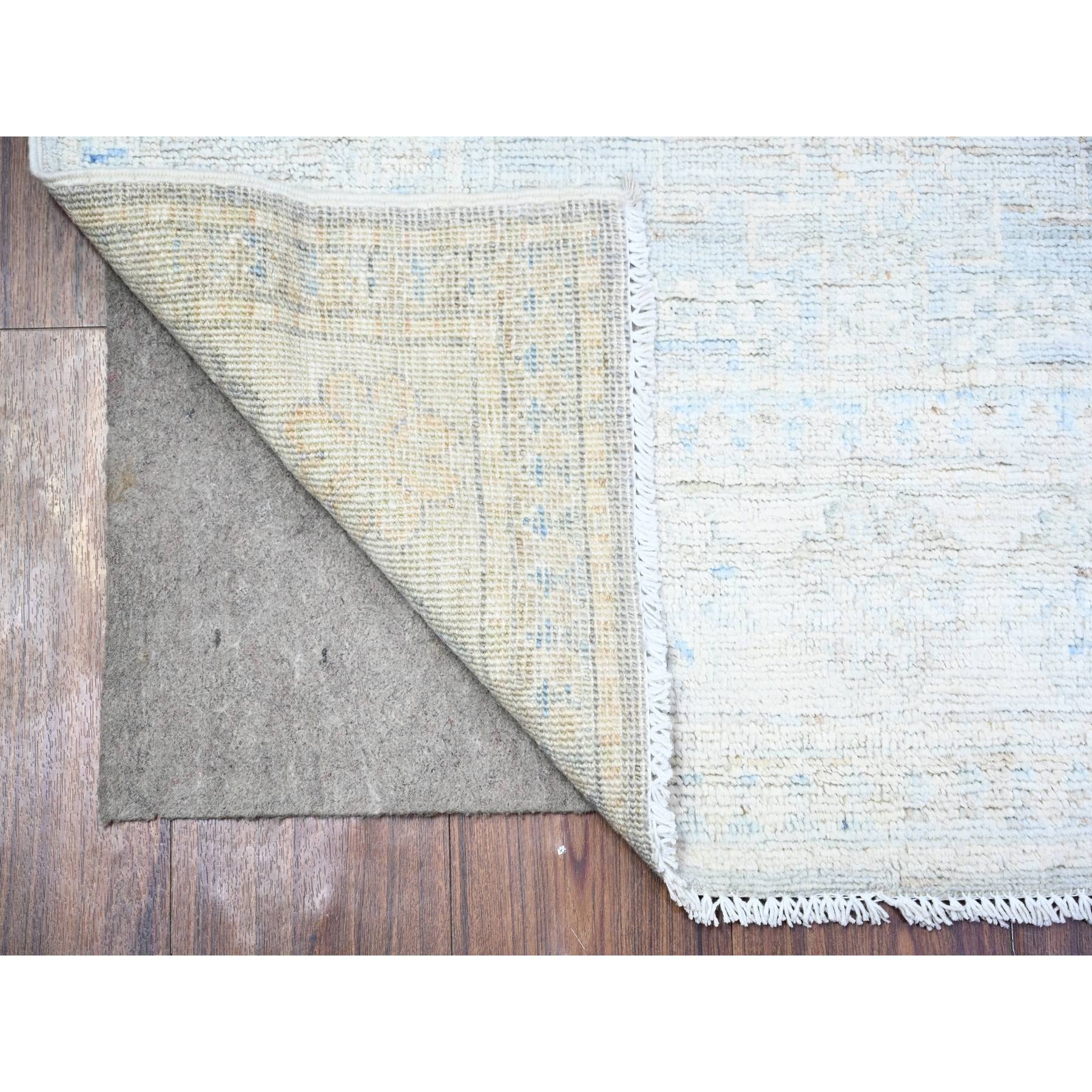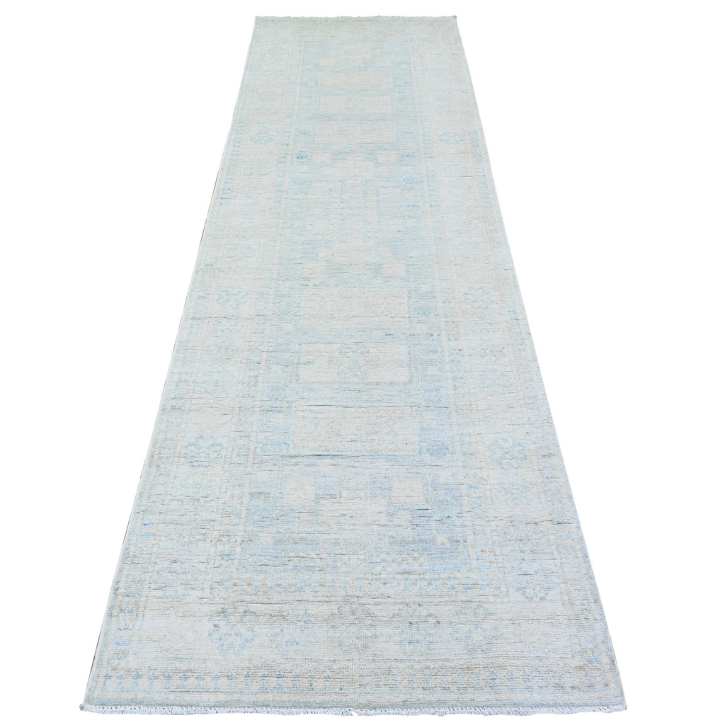 3'1"x10' Spanish Gray With Lexicon Ivory, High Grade Wool, Vegetable Dyes, Peshawar Washed Out Faded Designs, Hand Knotted, Runner Oriental Rug FWR449754
