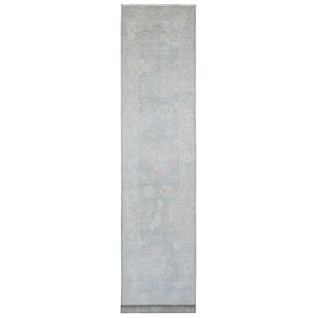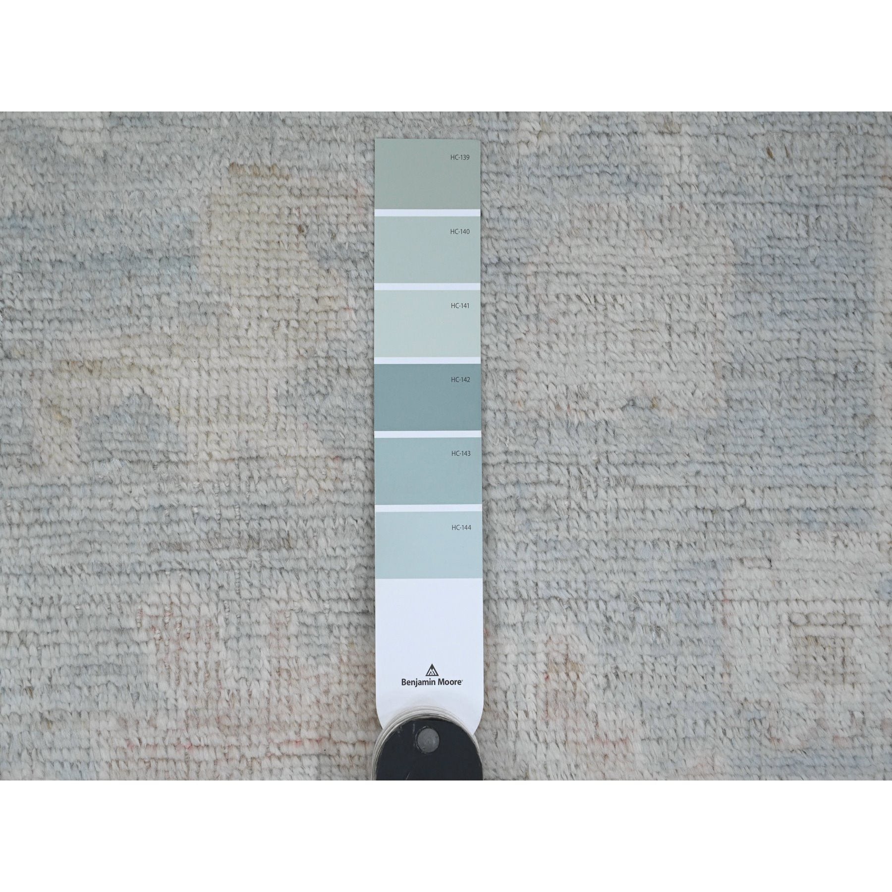 3'1"x15'6" Misty Gray, Afghan Angora Oushak With Large Leaf Design, Vegetable Dyes, Hand Knotted, 100% Wool, Xl Runner, Oriental Rug FWR539568