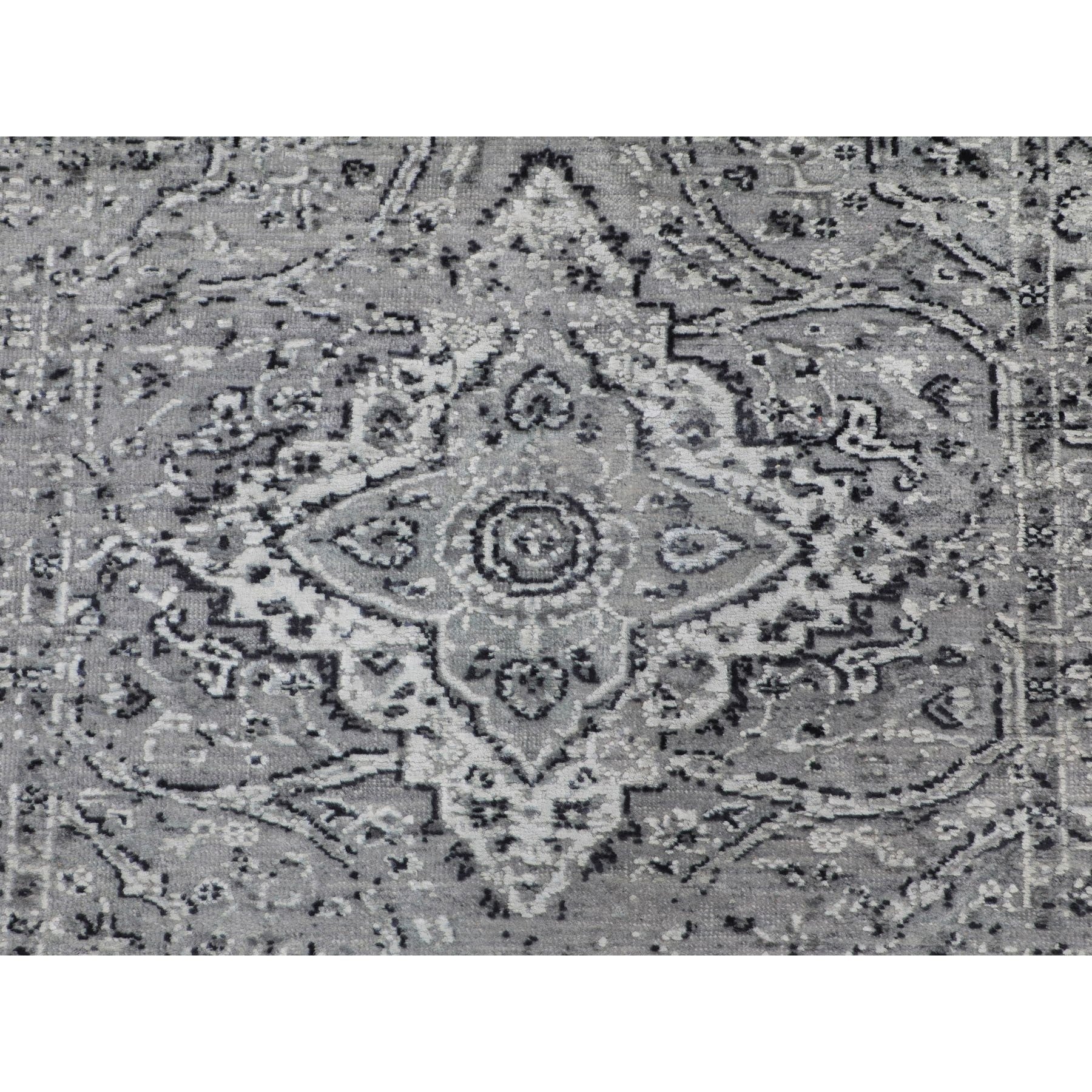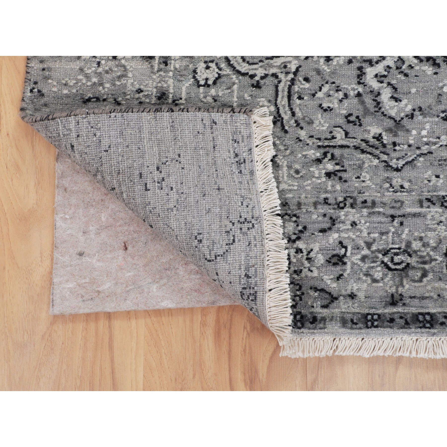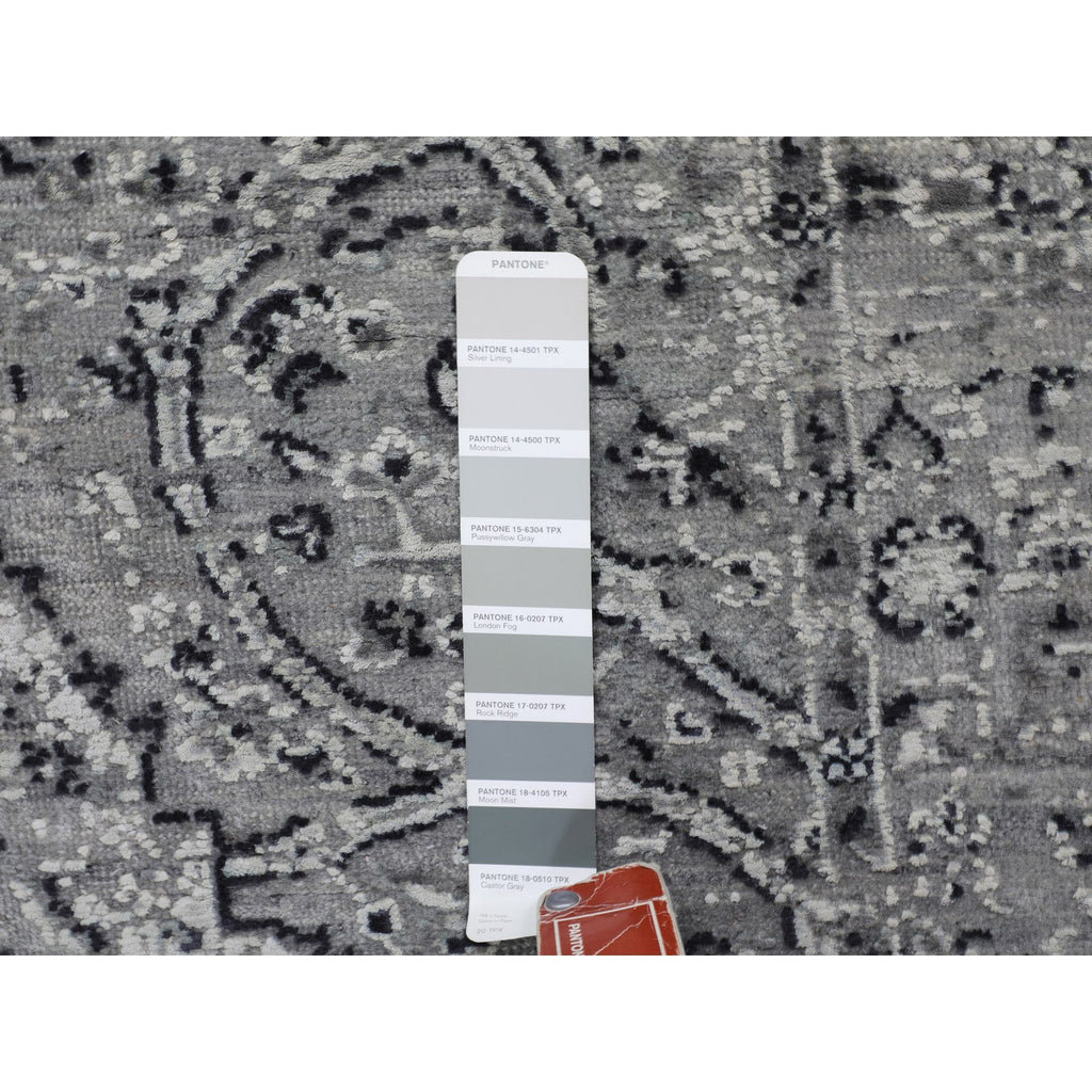 3'1"x5'1" Gray Persian Erased Design Silk With Textured Wool Hand Knotted Oriental Rug FWR348624