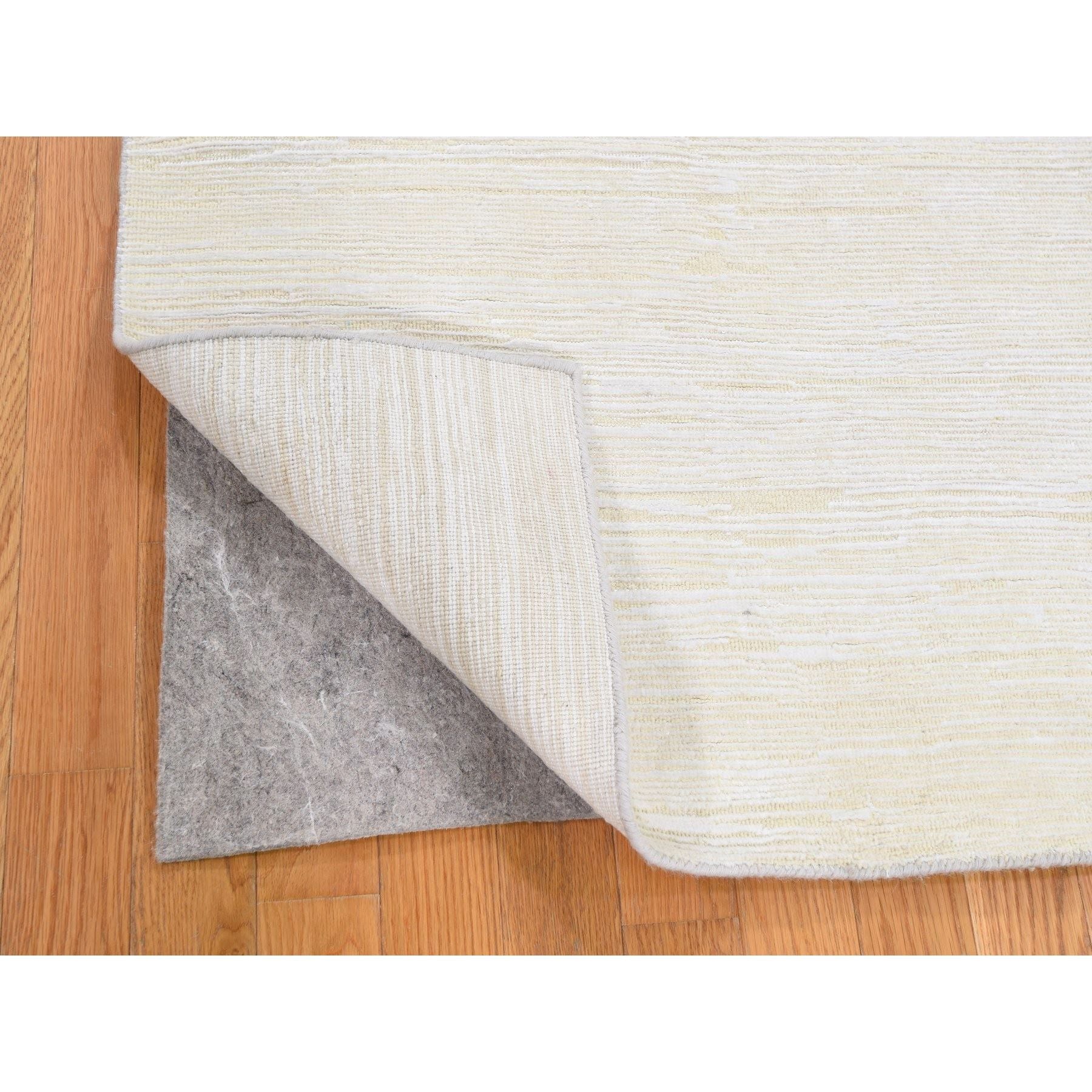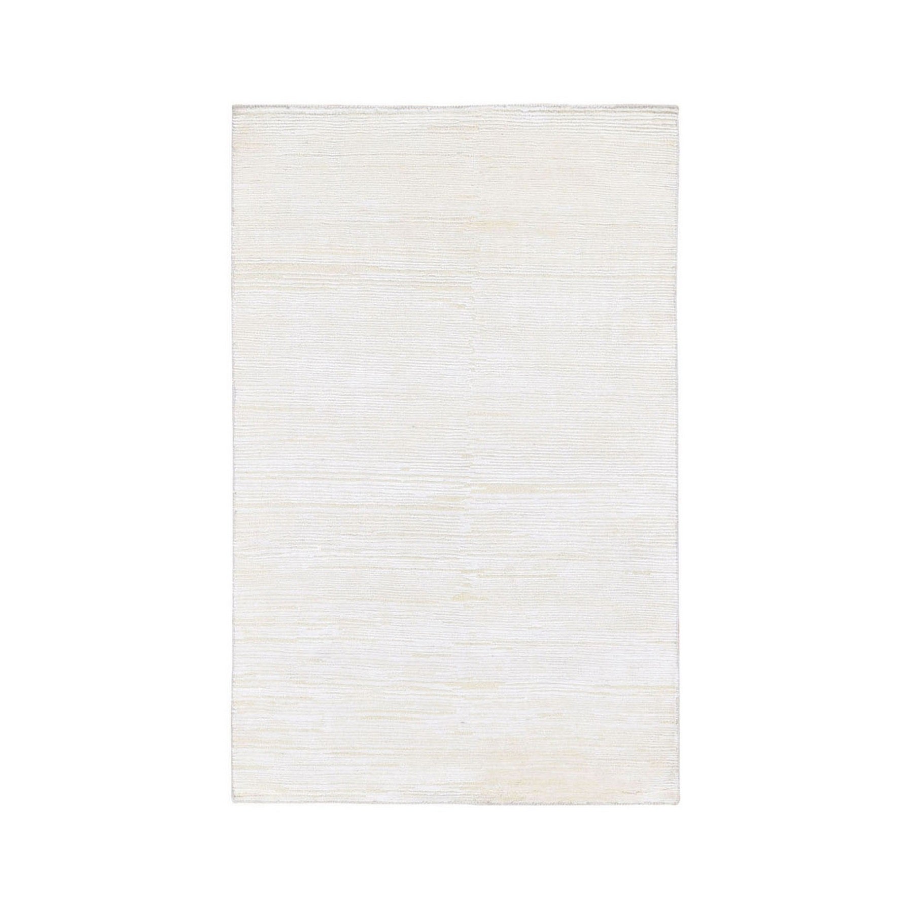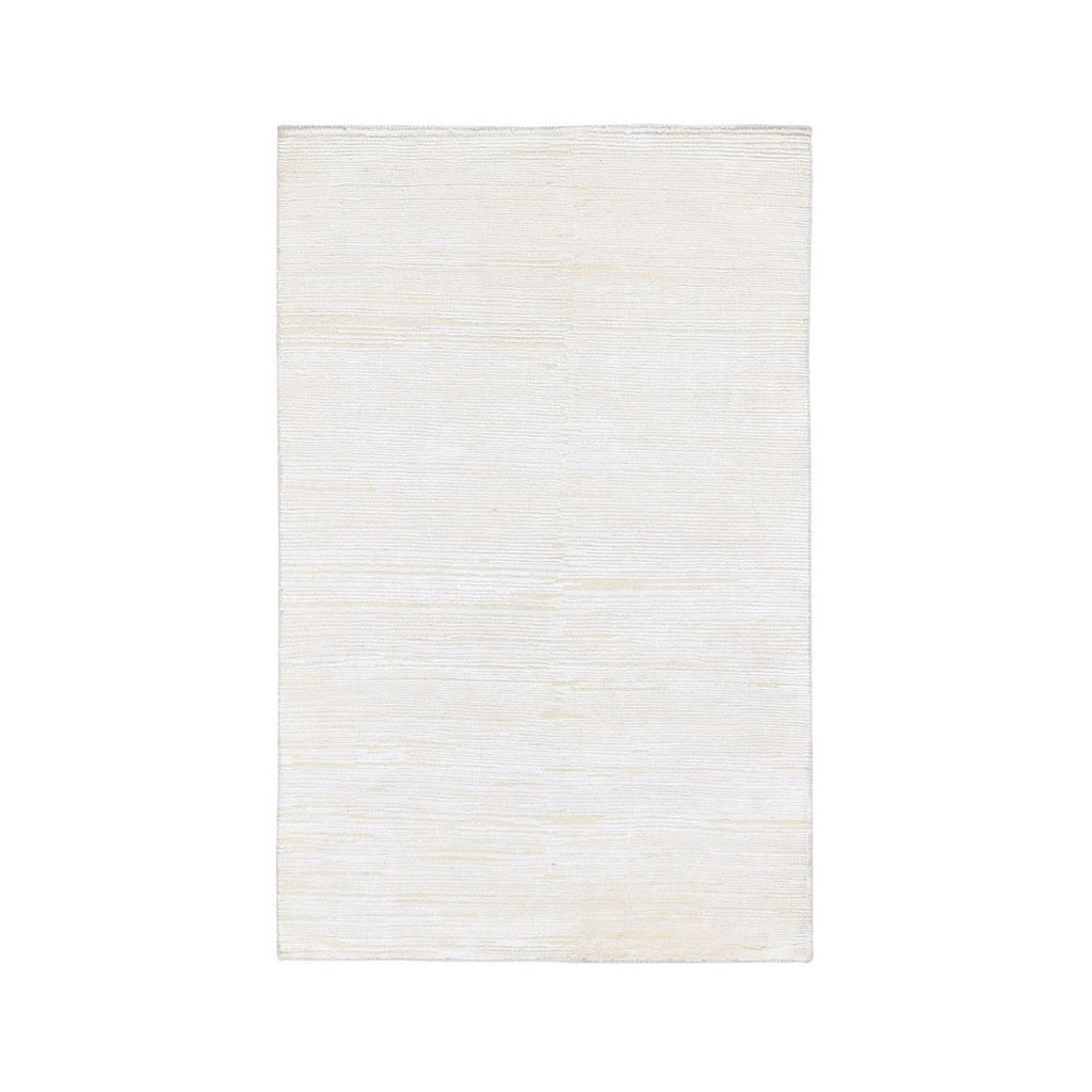 3'1"x5'1" Ivory Silk With Textured Wool Tone On Tone Striae Design Hand Knotted Hi-low Pile Oriental Rug FWR400842