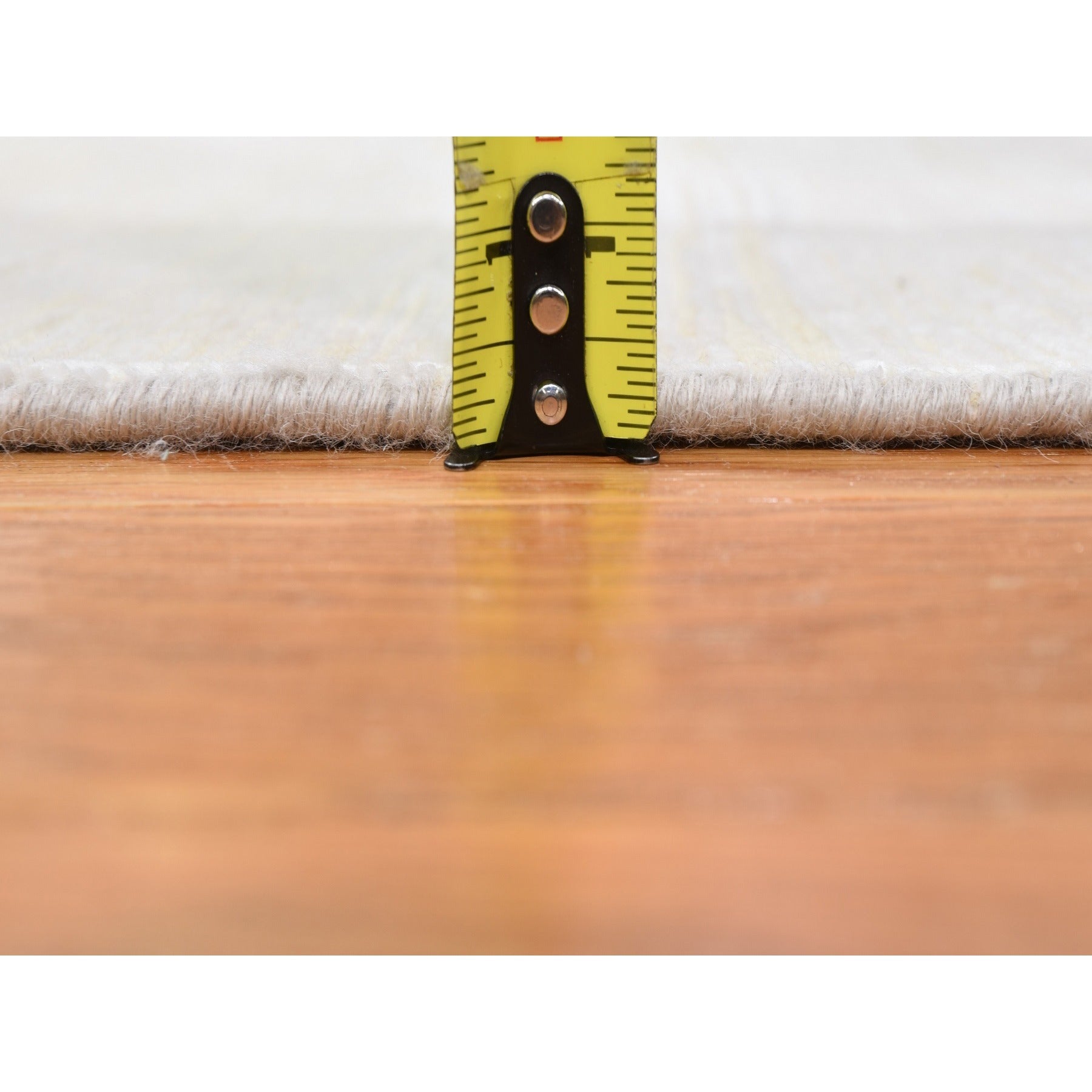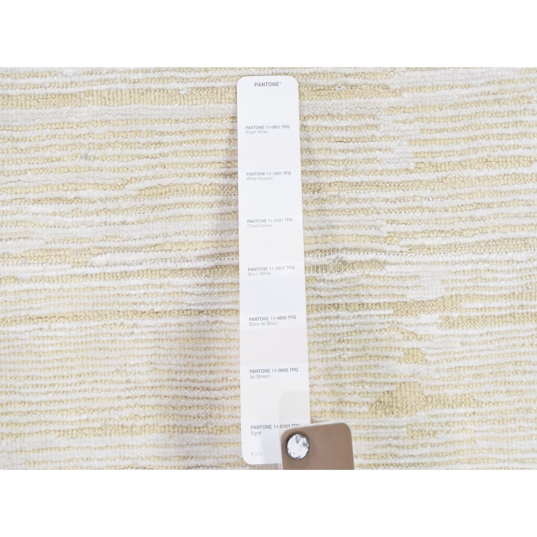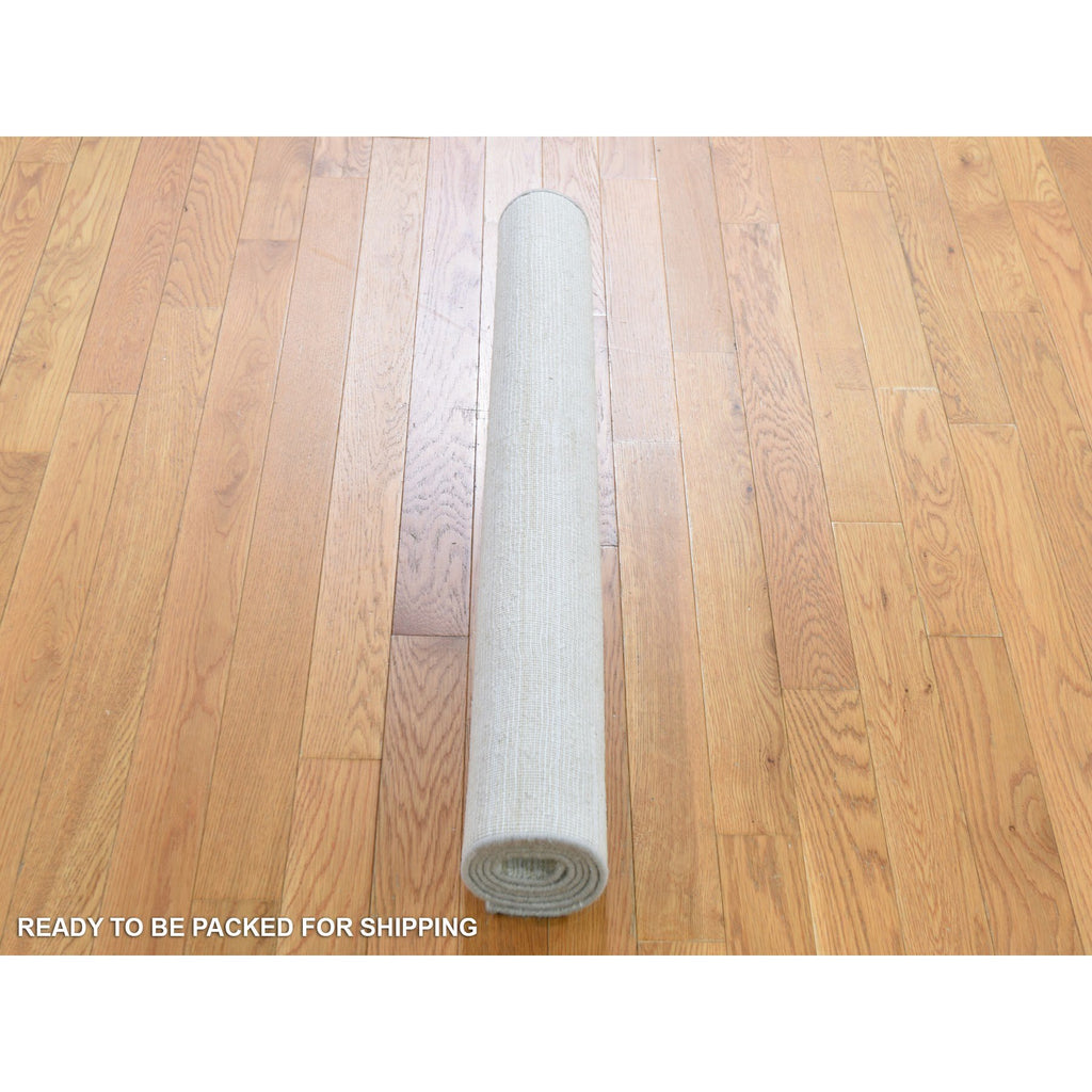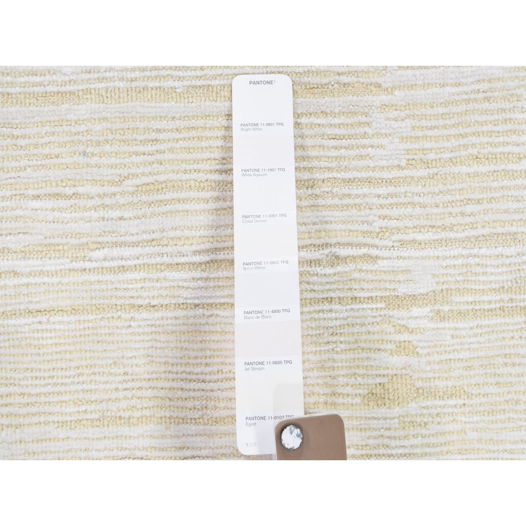 3'1"x5'1" Ivory Silk With Textured Wool Tone On Tone Striae Design Hand Knotted Hi-low Pile Oriental Rug FWR400842