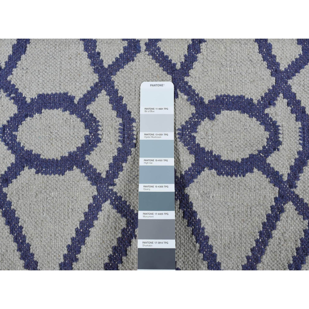 3'1"x5'2" Ice Blue, Durie Kilim Flat Weave, Geometric Design, Hand Woven, Reversible, 100% Wool, Oriental Rug FWR527046