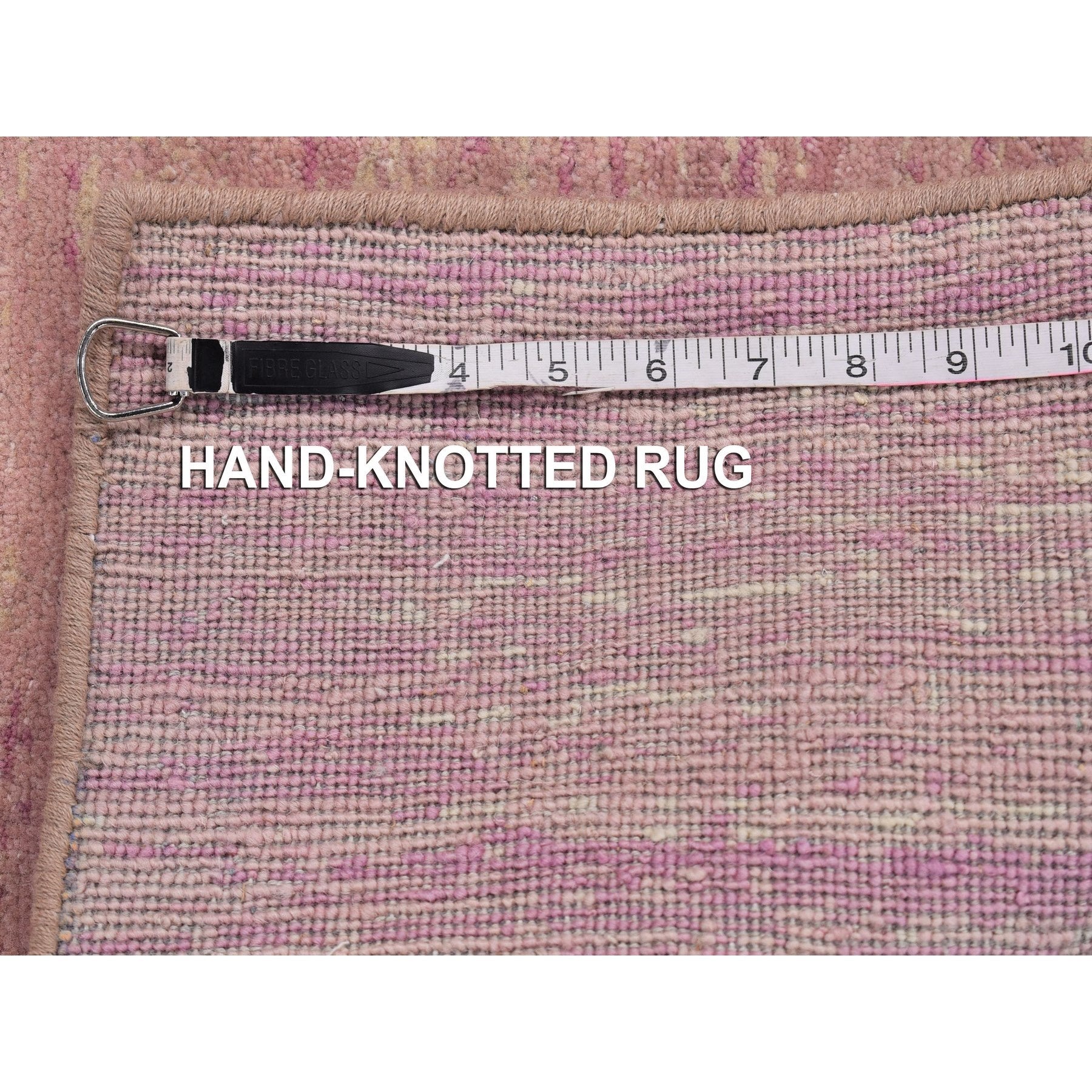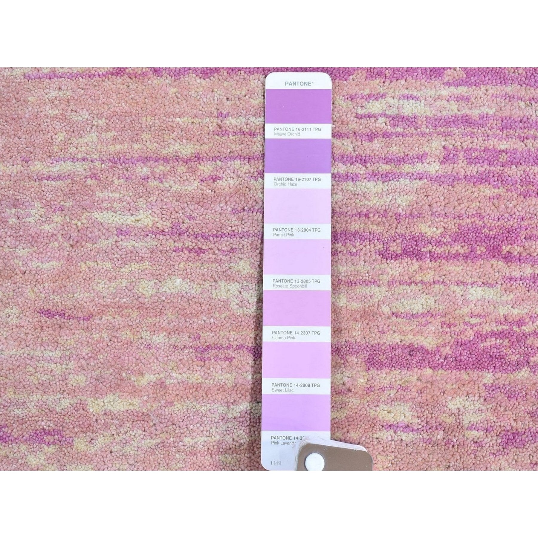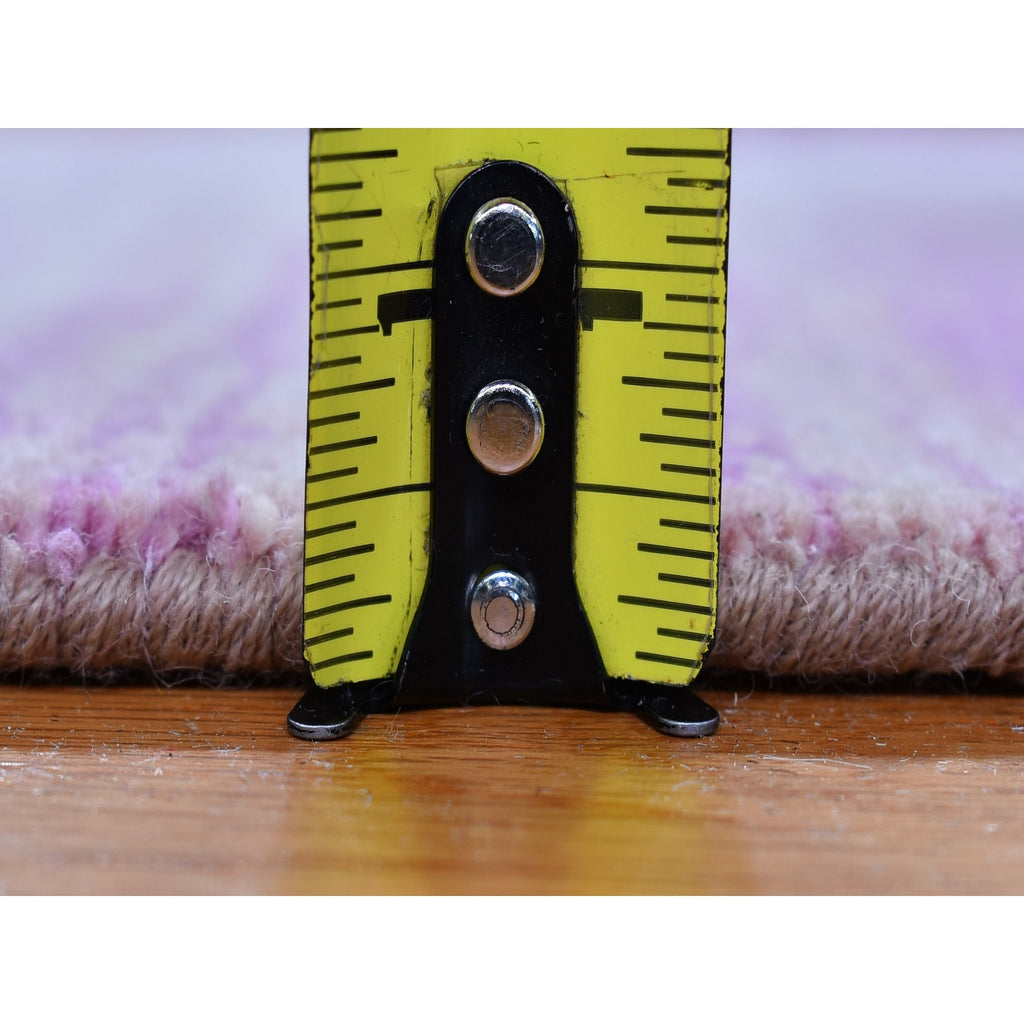 3'1"x5'4" Hand Knotted Pink Thick And Plush Organic Wool Only Horizontal Ombre Design Oriental Rug FWR400512