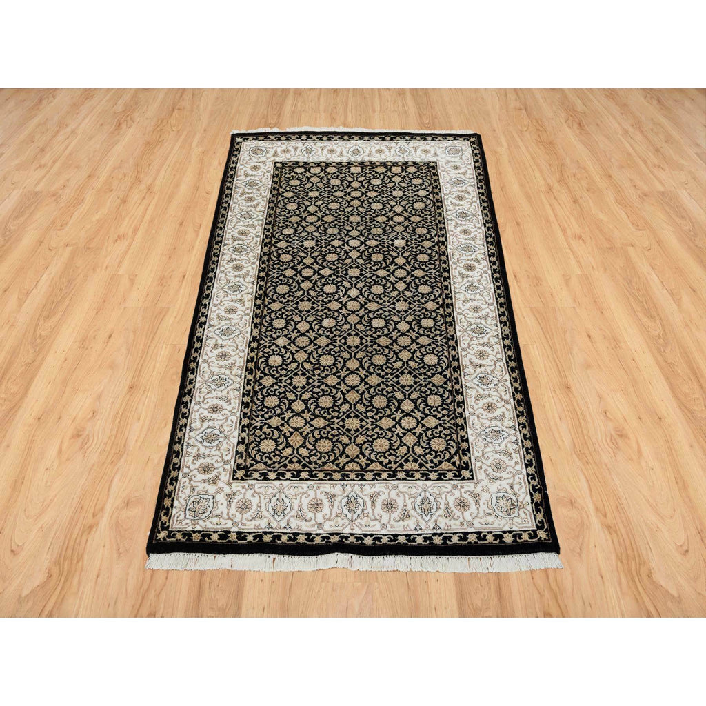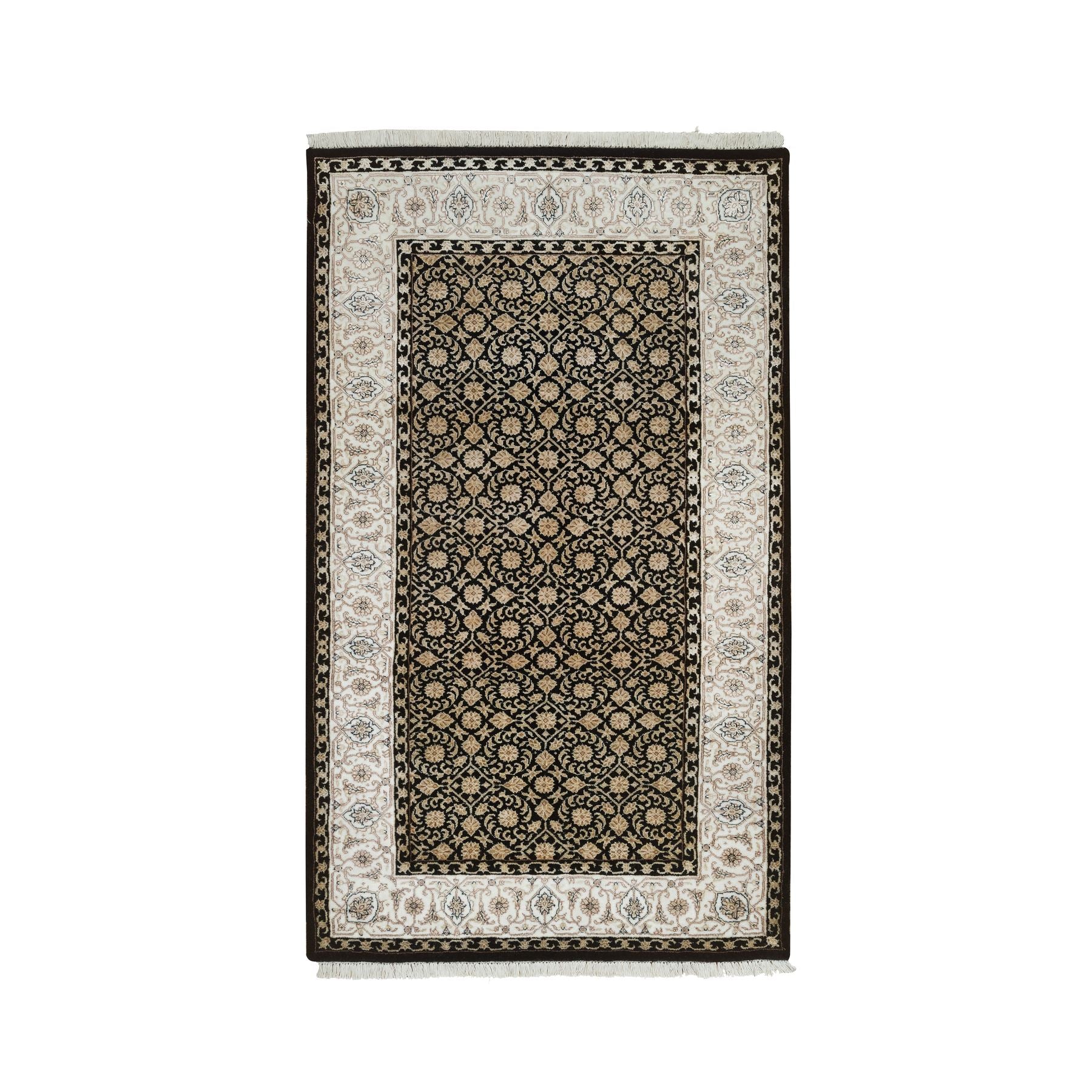3'1"x5'5" Eerie Black, 250 Kpsi Densely Woven, Organic Wool Hand Knotted, Herati With All Over Fish Mahi Design, Oriental Rug FWR391872
